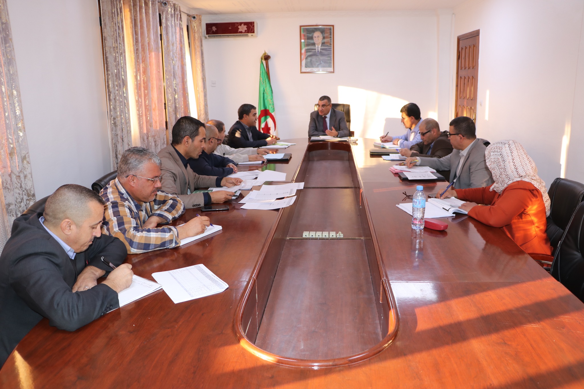 بحضور السيد الأمين العام للولاية، وكل من السيدات والسادة: مديرة السكن، المراقب المالي، مدير التعمير والهندسة المعمارية والبناء، مدير أملاك الدولة، مدير الوكالة الولائية للصندوق الوطني للسكن، رؤساء المصالح وملحق بالديوان.