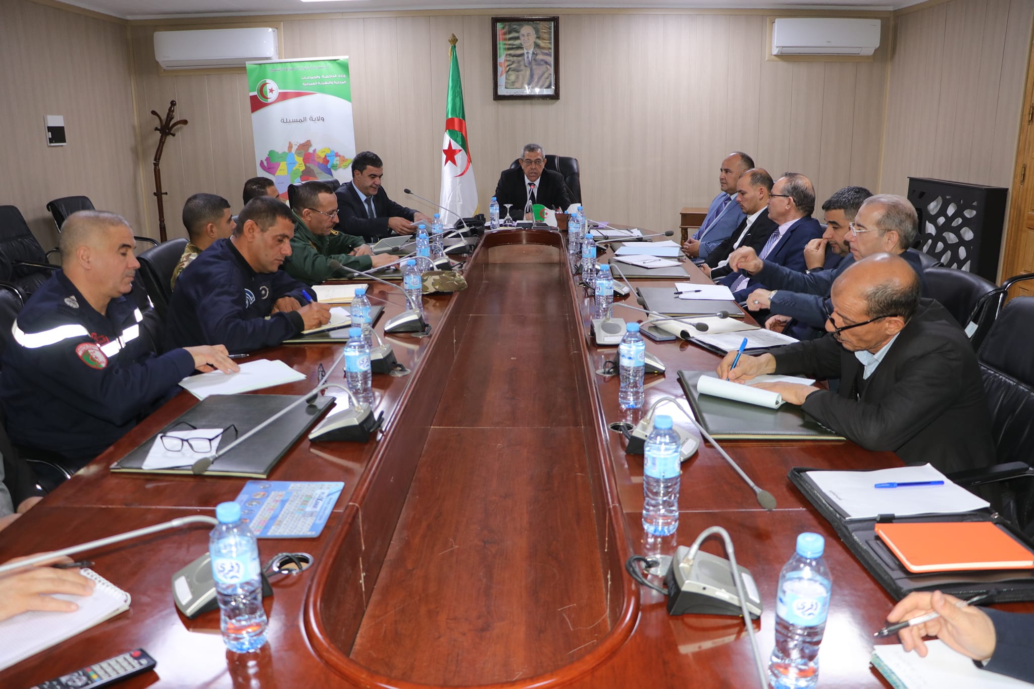 المسيلة/ في إطار التحضير الجيد لحملة الحصاد والدرس للموسم الفلاحي 2023/2024، عقد نهار اليوم الاثنين 15 أفريل 2024 السيد نجم الدين طيار والي الولاية إجتماعا تنسيقيا بخصوص التحضير لحملة الحصاد والدرس للموسم الفلاحي 2023/2024 بالولاية، حضر الاجتماع السيد الأمين العام للولاية وكل من السادة: ممثلي المصالح الأمنية، مديرالحماية المدنية، مدير المصالح الفلاحية، محافظ الغابات، مدير الطاقة والمناجم، مدير التجارة وترقية الصادرات، مدير الموارد المائية، مدير النقل، المدير بالنيابة لتعاونية الحبوب والبقول الجافة، رئيس الغرفة الفلاحية، مدير الصندوق الجهوي للتعاون الفلاحي، ممثل بنك الفلاحة والتنمية الريفية، مدير شركة تسويق المعدات والآلات وملحق بالديوان.