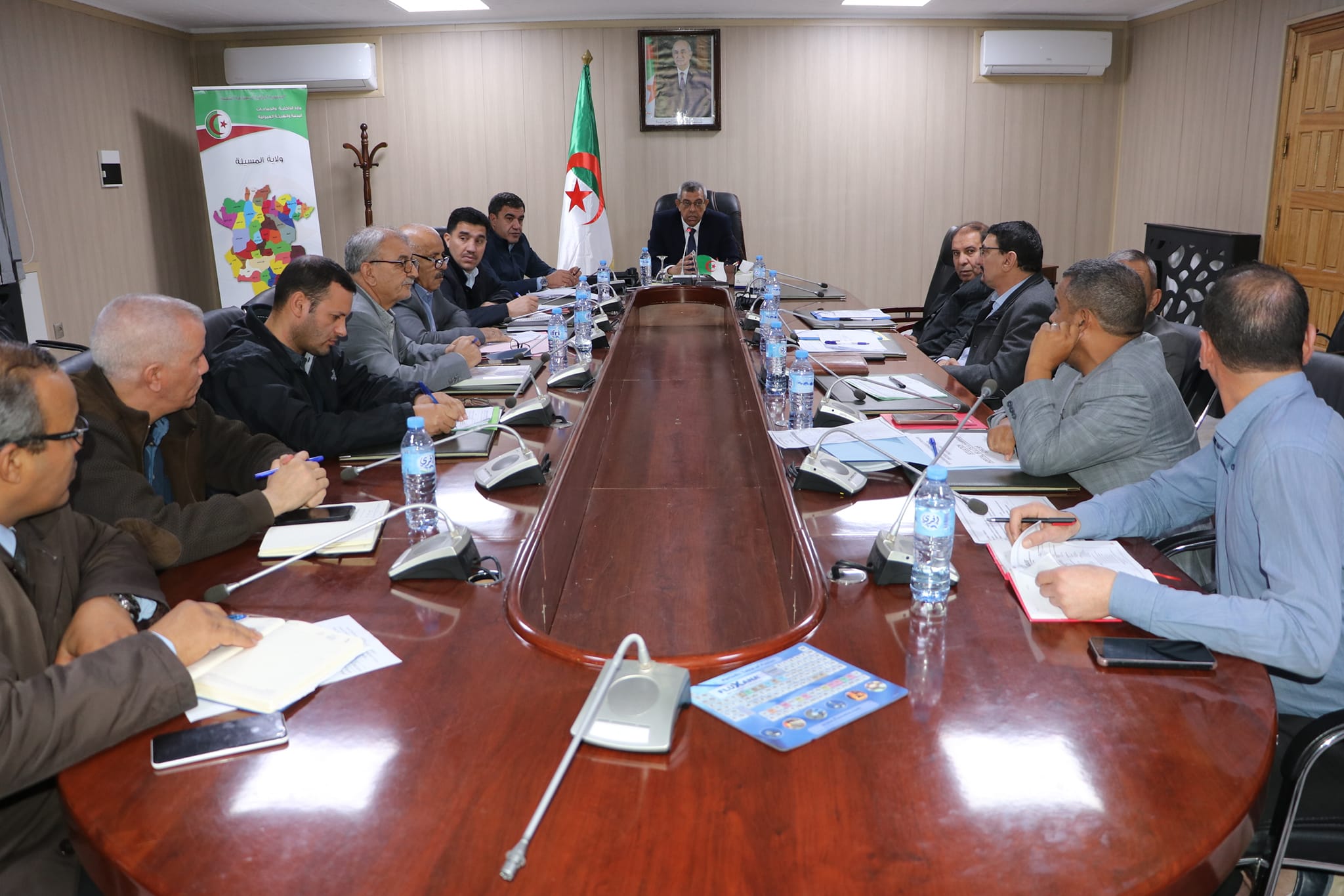 المسيلة/ ترأس السيد نجم الدين طيار والي الولاية صبيحة اليوم الاثنين 25 ديسمبر 2023 بحضور السيد الأمين العام للولاية وكل من السادة مدراء: المكلف بالتسيير بمديرية الصحة والسكان، البرمجة ومتابعة الميزانية، المراقب الميزانياتي، أمين خزينة الولاية، التجهيزات العمومية، مدير الموارد المائية، مدير وحدة الجزائرية للمياه، مدير الديوان الوطني للتطهير بالمسيلة، مدير شركة توزيع الكهرباء والغاز بالمسيلة، رؤساء المصالح، مكتب الدراسات، مقاولة الانجاز وملحق بالديوان.