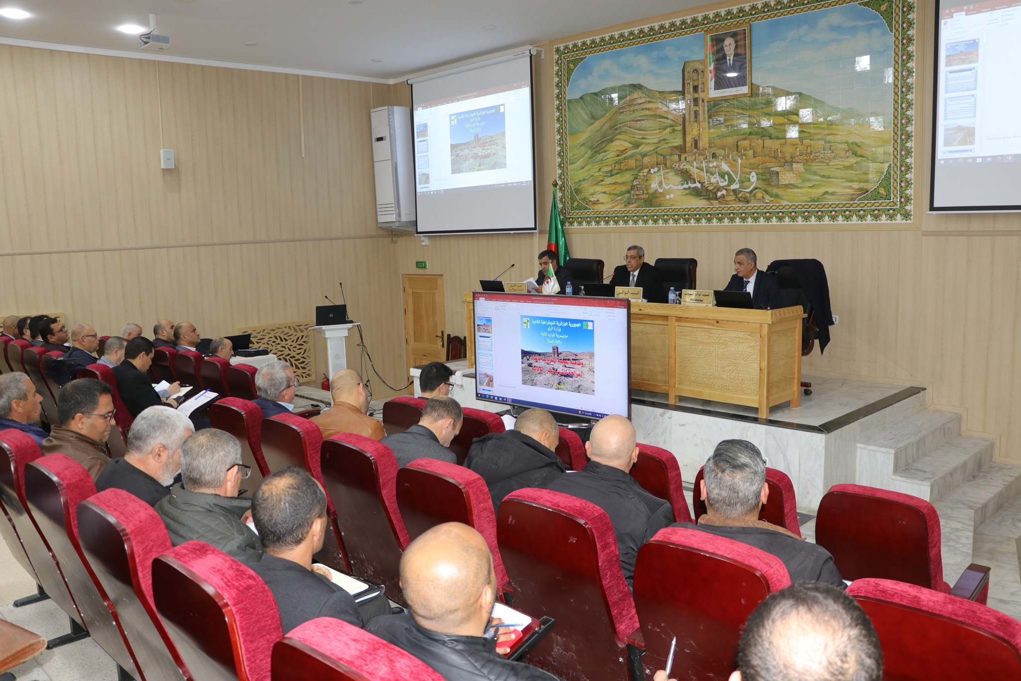 المسيلة/ ترأس السيد نجم الدين طيار والي الولاية صبيحة اليوم الثلاثاء 13 فيفري 2024، إجتماعا تقييميا لدراسة وضعية قطاع الموارد المائية بالولاية، بحضور السيد الوالي المنتدب لبوسعادة والسيد الأمين العام للولاية السادة رؤساء الدوائر وكل من السادة مدراء: الموارد المائية، الإدارة المحلية، البرمجة ومتابعة الميزانية، المراقب الميزانياتي، أمين خزينة الولاية، وحدة الجزائرية للمياه، وحدة الديوان الوطني للتطهير بالمسيلة، شركة توزيع الكهرباء والغاز بالمسيلة، رؤساء الأقسام الفرعية للموارد المائية، رؤساء مراكز توزيع المياه، رؤساء المصالح وملحق بالديوان.