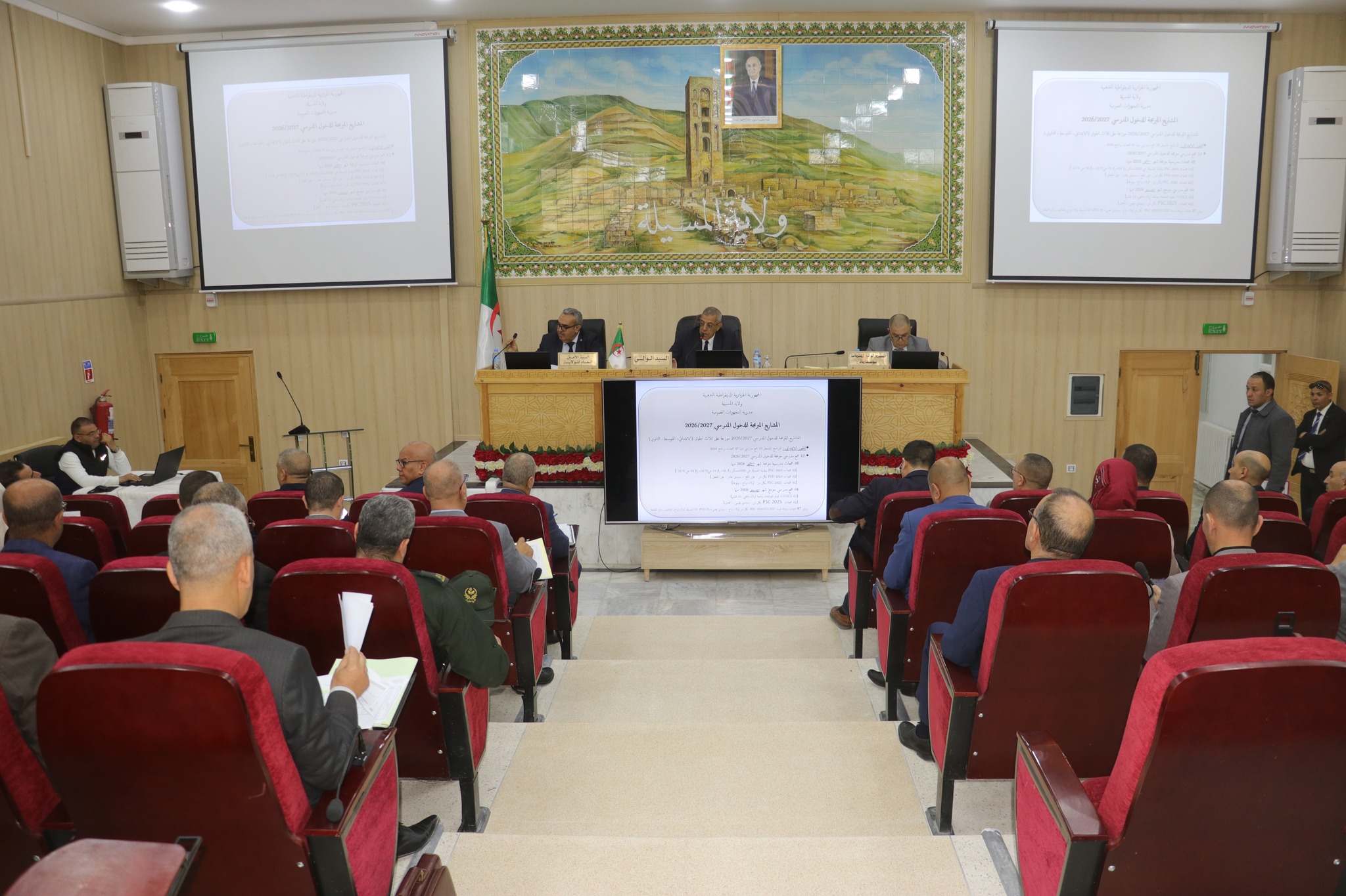المسيلة/ عقد نهار اليوم الخميس 09 أفريل 2026 السيد نجم الدين طيار والي الولاية اجتماعا تنسيقيا بقاعة الاجتماعات نور الدين صحراوي بمقر الولاية بحضور: السيد الوالي المنتدب للمقاطعة الادارية بوسعادة، السيد الأمين العام للولاية، وكل من السيدات والسادة: المفتش العام للولاية، مدير الادارة المحلية، مدير التنظيم والشؤون العامة، مدير البرمجة ومتابعة الميزانية، المراقب الميزانياتي للولاية، أمين خزينة الولاية، مدير الحماية المدنية، رؤساء الدوائر والسيدات والسادة مدراء: التجهيزات العمومية، التربية، النشاط الاجتماعي والتضامن، التعمير والهندسة المعمارية والبناء، السكن، أملاك الدولة، مسح الأراضي والحفظ العقاري، البيئة، المصالح الفلاحية، محافظ الغابات، الشباب والرياضة، الري، الأشغال العمومية، النقل، التجارة، الصحة، الضرائب، الطاقة والمناجم، الصناعة، البريد والمواصلات السلكية واللاسلكية، الوكالة العقارية الولائية، المؤسسة العمومية الولائية لصيانة وتسيير المساحات الخضراء، المؤسسة العمومية الولائية لتسيير مراكز الردم التقني، وحدة الجزائرية للمياه، وحدة ديوان التطهير بالمسيلة، شركة التوزيع سونلغاز، الهيئة التقنية للرقابة في البناء بالمسيلة، الهيئة الوطنية للرقابة على أشغال الري، بريد الجزائر، ديوان الأراضي الفلاحية، تعاونية الحبوب والبقول الجافة بالمسيلة، رئيس الغرفة الفلاحية، غرفة التجارة والصناعة الحضنة، وحدة الديوان الوطني لتغذية الانعام بالمسيلة، المفتش البيطري للولاية، المراقبين الماليين لدى البلديات، أمناء الخزينة لدى البلديات.
