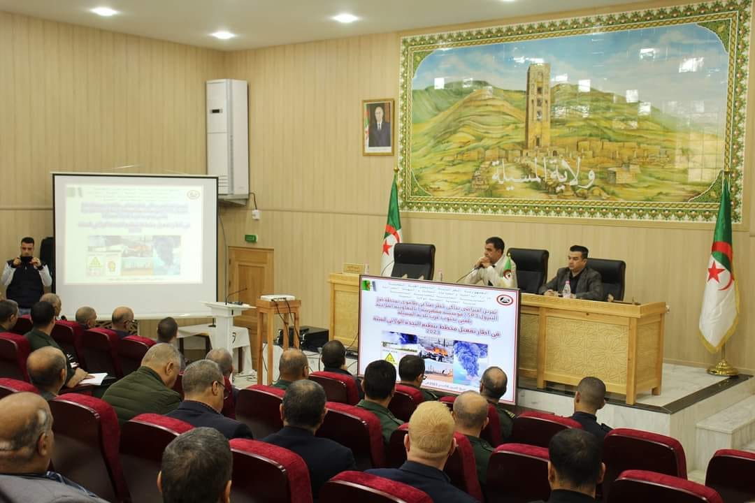 المسيلة/ ترأس صبيحة اليوم الاثنين 15 ماي 2023 السيد الأمين العام للولاية اجتماعا خاصا للوقوف على أهم الترتيبات والتحضيرات الخاصة بمناورة محاكاة لتمرين افتراضي تجريبي لمجابهة خطر صناعي طاقوي بمنطقة محطة ضخ البترول رقم 03 سونطراك SP3 بالمسيلة المزمع إقامته يوم غد الثلاثاء 16 ماي 2023 بالتعاونية الفلاحية بلقبي منطقة غزال بلدية المسيلة، بحضور السيد رئيس الديوان والسادة: رئيس دائرة مسيلة، رئيس دائرة الشلال، رئيس المجلس الشعبي لبلدية مسيلة، رؤساء المقاييس، رؤساء المصالح، ملحقون بالديوان.