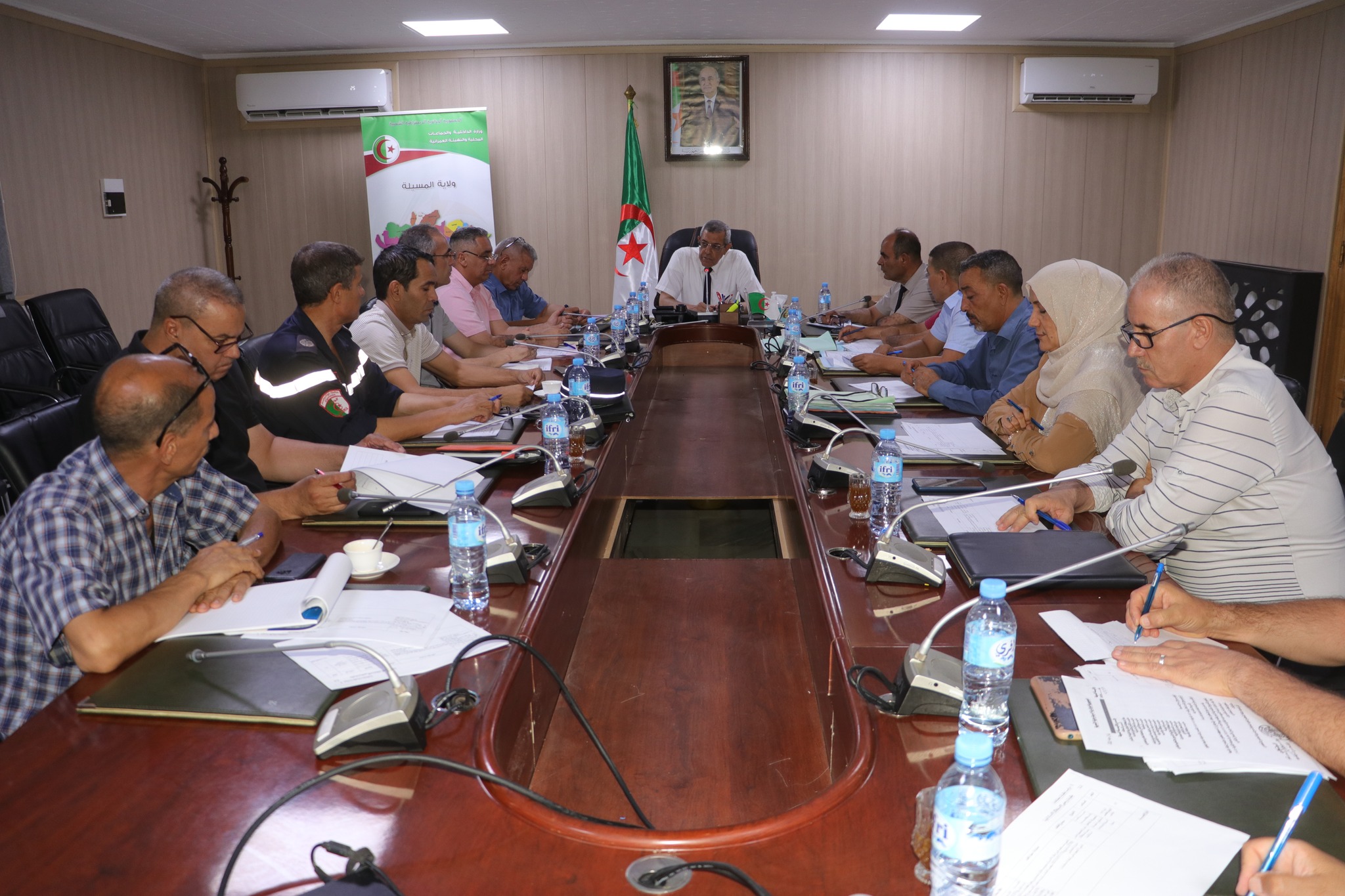 المسيلة/ في إطار مواصلة عملية تطهير المشاريع الاستثماريةترأس اليوم الأحد 27 جويلية 2025 السيد نجم الدين طيار والي الولاية إجتماعا تنسيقييا، بقاعة الاجتماعات أحمد الغازي مقر الولاية، بحضور السادة: رئيس المجلس الشعبي الولائي بالنيابة، ممثل الوكالة الجزائريـة لترقيـة الاستثمار، مـدير التقنين والشـؤون العامة بالنيابة، مـدير الصناعة، مدير أمـلاك الدولة، مدير الحماية المدنية، مدير التعمير والهندسة المعمارية والبناء، مـدير السياحة والصناعة التقليدية، مـدير المصالح الفلاحية، مدير التجارة، مديرة البيئة، مدير الطاقة، مـدير مسح الأراضي والحفـظ العقـاري، مدير الوكالة الولائية للتسيير والتنظيم العقاري، مدير شركة توزيع الكهرباء والغاز بالمسيلة، مأمور السجل التجاري، رؤساء المصالح، وملحق بالديوان.