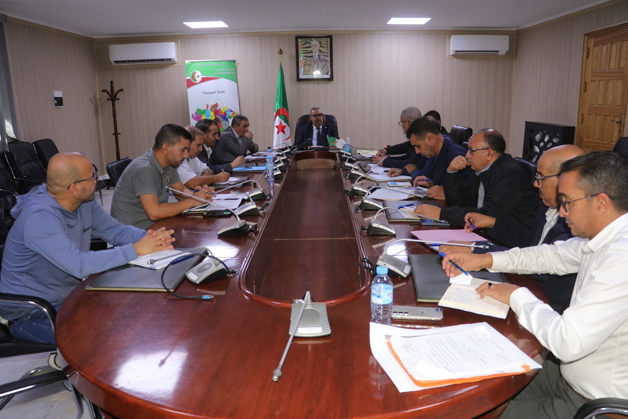 المسيلة/ ترأس اليوم الثلاثاء 21 أكتوبر 2025 السيد الأمين العام للولاية، اجتماعا تنسيقيا بقاعة الاجتماعات أحمد الغازي بمقر الولاية، بحضور السادة: مدير الصحة، مدير التجهيزات العمومية، مدير البرمجة ومتابعة الميزانية، المراقب الميزانياتي للولاية، أمين خزينة الولاية، مدير الري، مدير شركة توزيع الكهرباء والغاز بالمسيلة، مدير وحدة الجزائرية للمياه، مدير ديوان التطهير، مدير هيئة الرقابة التقنية للبناء (CTC)، مدير مكتب الدراسات والأبحاث بالمسيلة (BERM)، رؤساء المصالح وملحق بالديوان.