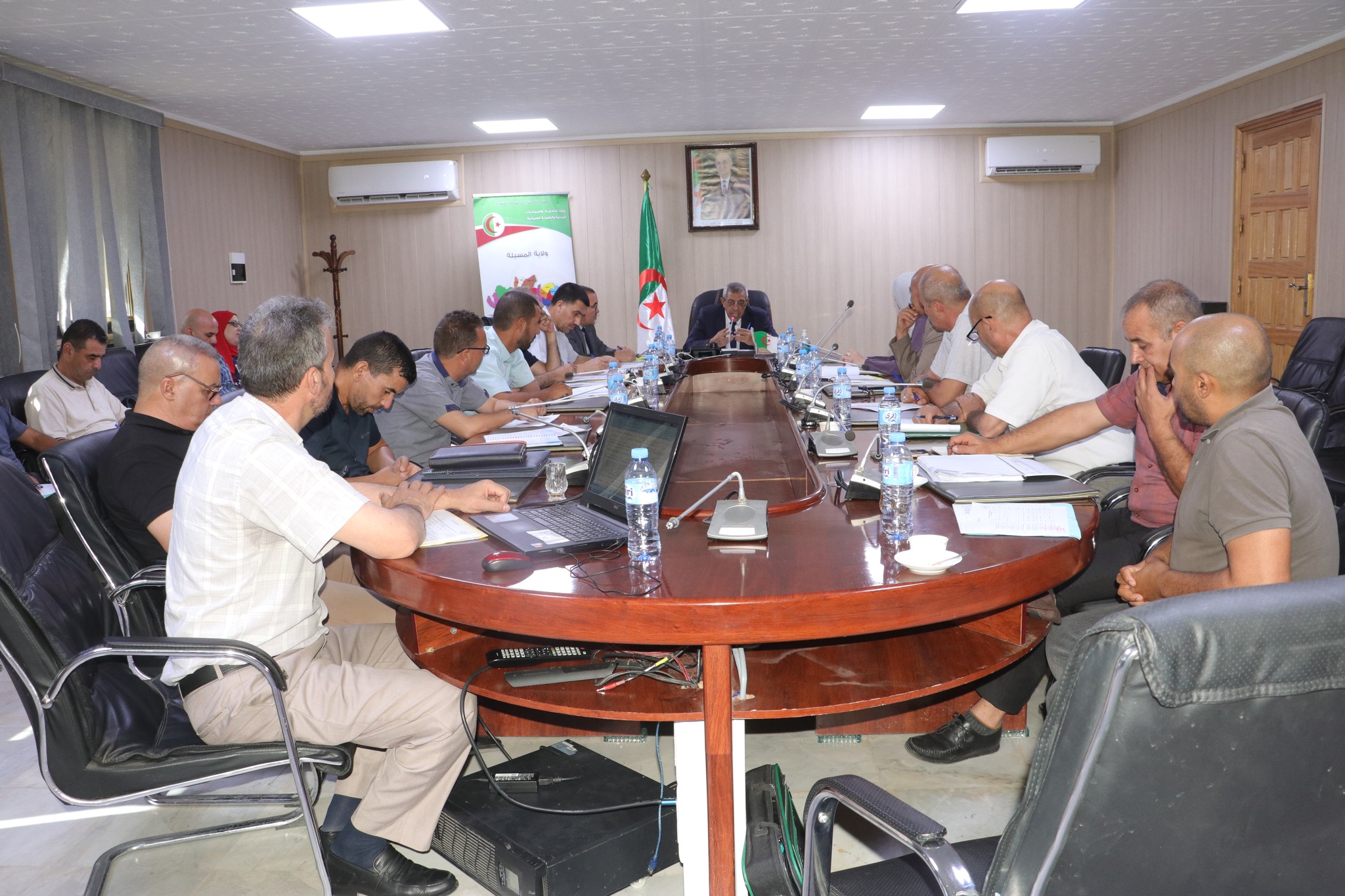 المسيلة ترأس اليوم الأربعاء 03 سبتمبر 2025 السيد نجم الدين طيار والي الولاية إجتماعا تنسيقيا، بقاعة الاجتماعات أحمد الغازي بمقر الولاية، بحضور السادة: الأمين العام للولاية، مدير الادارة المحلية، رئيسة دائرة أولاد سيدي إبراهيم، أمين خزينة الولاية، المراقـب الميزانياتي للولاية، مدير التجهيزات العمومية، مدير التربية، مدير الطاقة، مدير الري، رؤساء المجالس الشعبية لبلديات: أولاد سيدي إبراهيم، بنزوه، مدير شـركة توزيع الكهرباء والغـاز بالمسيلة، مـدير وحـدة الجزائريـة للمياه بالمسيلة، مدير ديوان التطهير بالمسيلة، مدير هيئة الرقابة التقنية للبناء (CTC)، المراقـب الميزانياتي بوسعادة، أمين خزينة ما بين البلديات أولاد سيدي ابراهيم، رؤساء المصالح، ملحق بالديوان، الأمناء العامـون لبلديات: أولاد سيدي إبراهيم، بنزوه، رؤساء الأقسام الفرعية لدائرة عين الحجل.