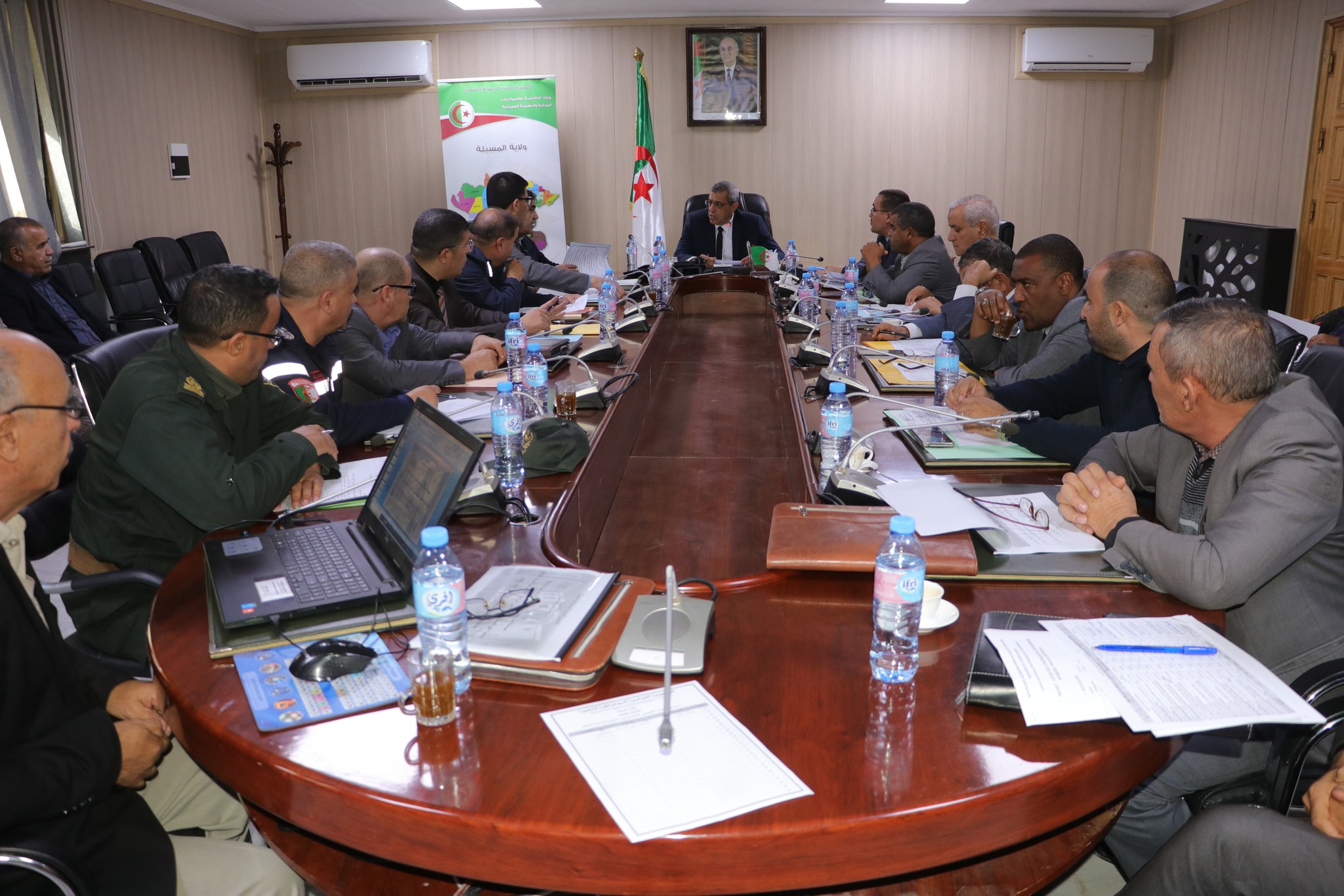 المسيلة/ ترأس ظهر اليوم الأربعاء 13 نوفمبر 2024 السيد نجم الدين طيار والي الولاية إجتماعا تقييميا، بقاعة الاجتماعات مقر الولاية، بحضور السيد الأمين العام للولاية، السيد مدير الإدارة المحلية، السادة مدراء: الحماية المدنية، محافظ الغابات، البرمجة ومتابعة الميزانية، المراقب الميزانياتي، أمين خزينة الولاية، أملاك الدولة، الطاقة، الصحة، التجهيزات العمومية، التعمير والهندسة المعمارية والبناء، الموارد المائية، التكوين والتعليم المهنيين، الثقافة، الشباب والرياضة، الأشغال العمومية، التجارة، السياحة والصناعة والتقليدية، المصالح الفلاحية، التربية، المجاهدين، البيئة، وحدة توزيع الكهرباء والغاز بالمسيلة رؤساء المصالح، وملحق بالديوان.