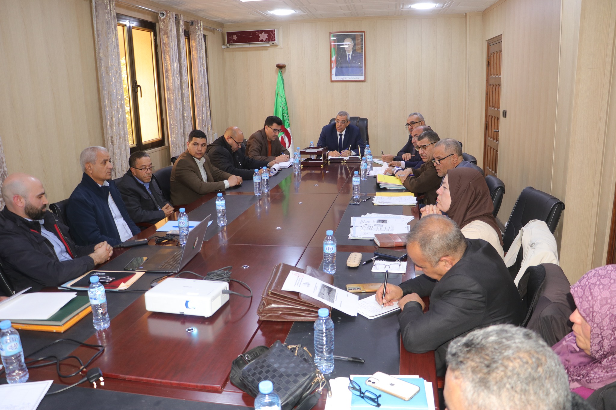 المسيلة/ ترأس اليوم الأربعاء 01 أفريل 2026 السيد نجم الدين طيار والي الولاية إجتماعا تقييميا، بقاعة الاجتماعات ميلود طاهري مقر الولاية، بحضور السيد الأمين العام للولاية، وكل من السادة: مدير التقنين والشؤون العامة، رئيس دائرة امجدل، السيدات والسادة مدراء: الري، الطاقة، أملاك الدولة، البيئة، السكن، التعمير والهندسة المعمارية والبناء، مسح الأراضي والحفظ العقاري، الأشغال العمومية، المصالح الفلاحية، محافظ الغابات، رئيس المجلس الشعبي لبلدية امجدل، مدير شركة التوزيع للكهرباء والغاز بالمسيلة، الوكالة العقارية الولائية، وحدة الجزائرية للمياه، وحدة ديوان التطهير بالمسيلة، هيئة الرقابة التقنية للري ورؤساء المصالح.