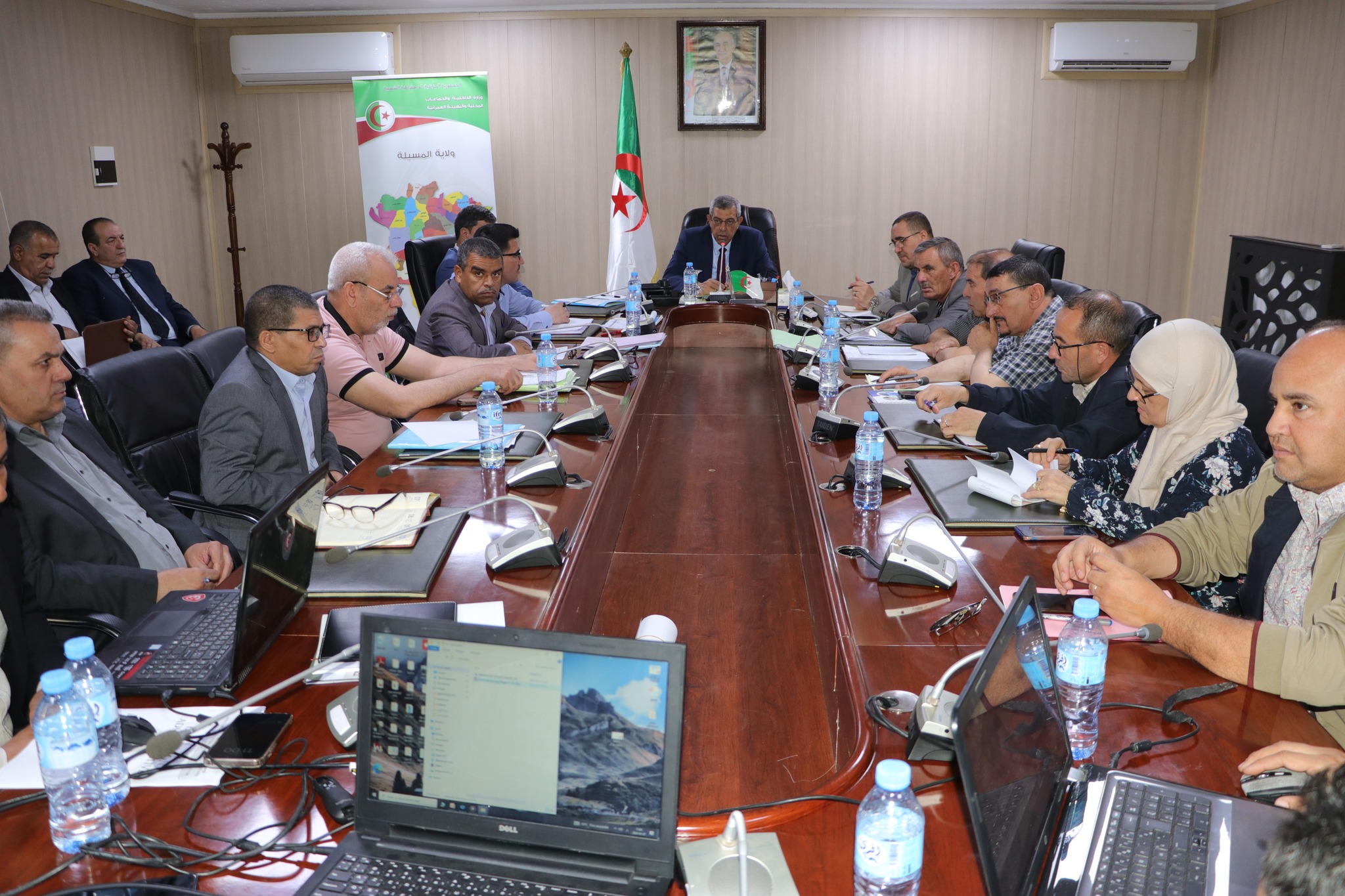 المسيلة/ ترأس اليوم الثلاثاء 07 ماي 2024 السيد نجم الدين طيار والي الولاية اجتماعا تنسيقيا بقاعة الإجتماعات أحمد الغازي بمقر الولاية بحضور السيد الأمين العام للولاية، وكل من السيدة والسادة مدراء: الادارة المحلية، الحماية المدنية، محافظ الغابات، البرمجة ومتابعة الميزانية، أمين خزينة الولاية، المراقب الميزانياتي، الضرائب، التجهيزات العمومية، الأشغال العمومية، التعمير والهندسة المعمارية والبناء، الطاقة، الموارد المائية، الصحة، البيئة، الشباب والرياضة، النشاط الاجتماعي والتضامن، التجارة وترقية الصادرات، المجاهدين، التكوين والتعليم المهنيين، التربية، السياحة والصناعة التقليدية، الثقافة، النقل، المصالح الفلاحية، الشؤون الدينية والأوقاف، رؤساء المصالح وملحقين بالديوان.