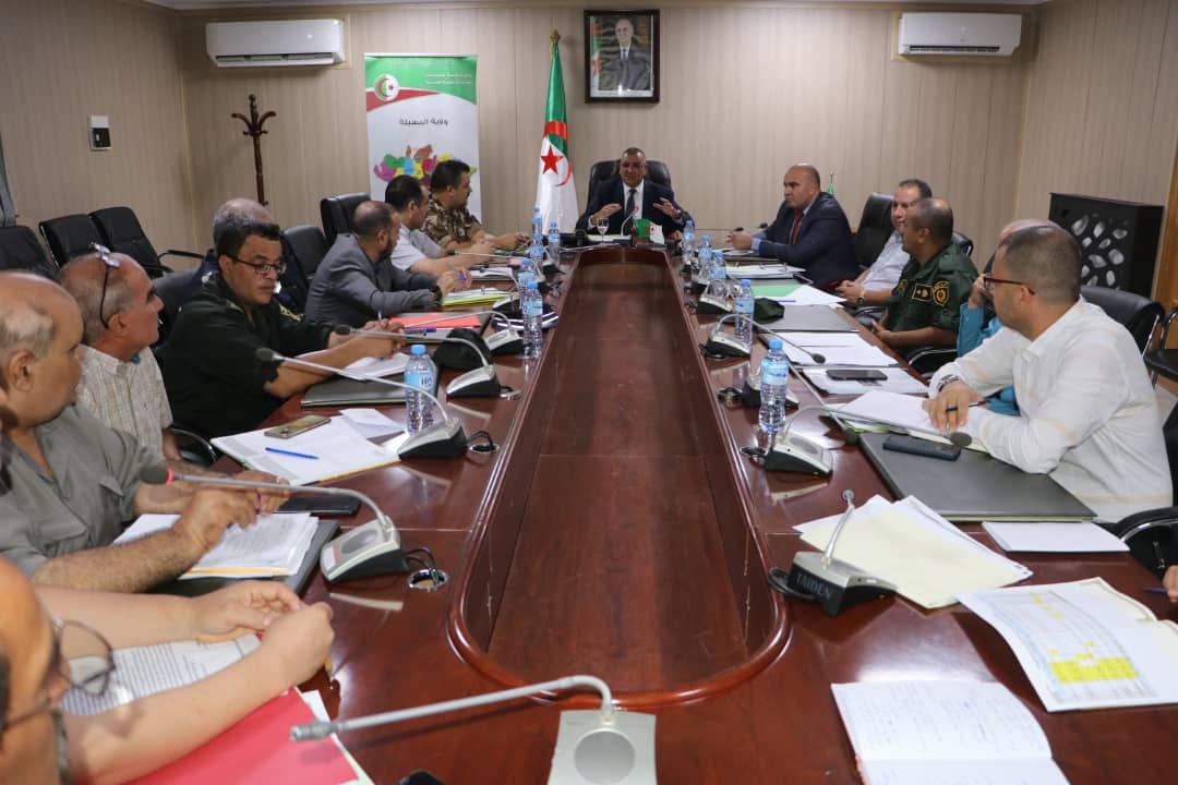 المسيلة/ ترأس نهار اليوم الأربعاء 06 سبتمبر 2023 السيد عبد القادر جلاوي والي الولاية اجتماعا موسعا للجنة الأمنية للولاية، بحضور السيد النائب العام لدى المجلس القضائي، السادة أعضاء اللجنة الأمنية، مدير كل من قطاع: الحماية المدنية، الجامعة، محافظة الغابات، التجارة، الصحة، الموارد المائية، الطاقة، الشؤون الدينية والأوقاف، وحدة الجزائرية للمياه، مؤسسة Agrodiv بالمسيلة، تعاونية الحبوب والبقول الجافة بالمسيلة، وبحضور مندوب الأمن بالولاية.