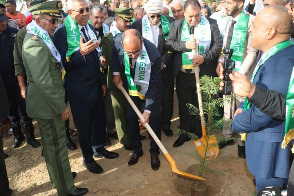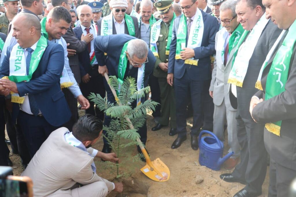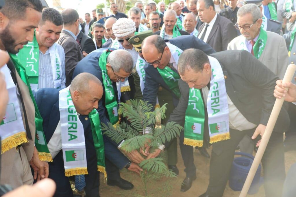 ليقوم السيد والي الولاية والوفد المرافق له بعملية تشجير رمزية بمحيط مقبرة الشهداء تخليدا للمناسبة.