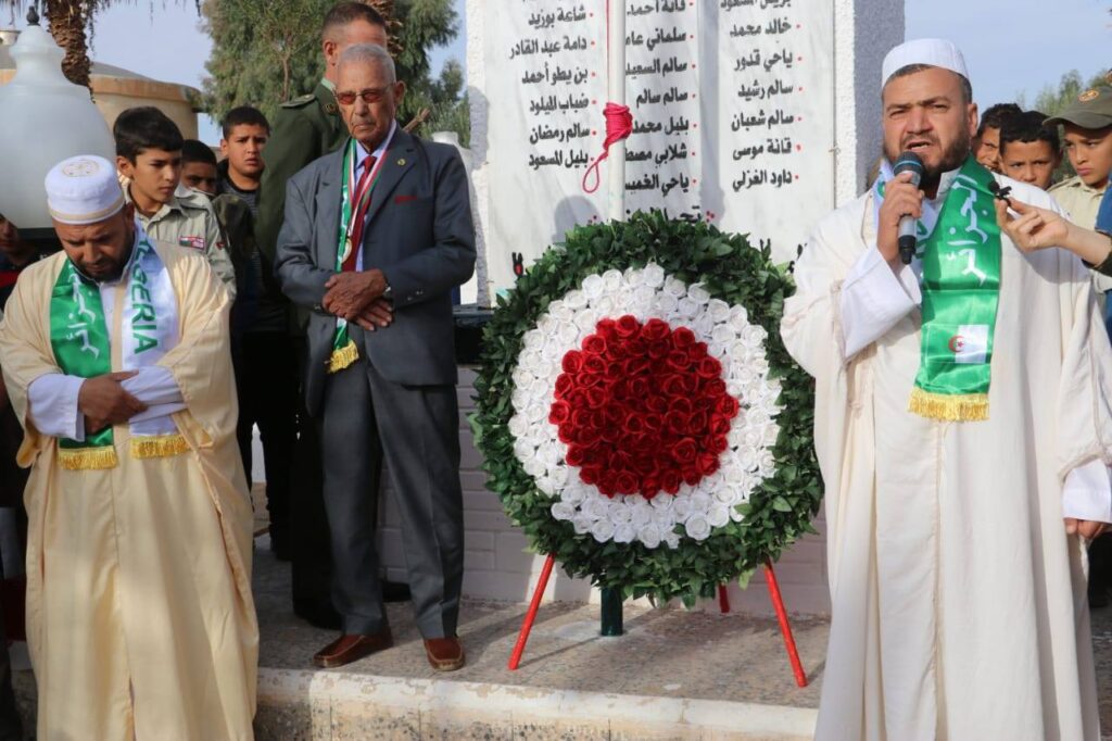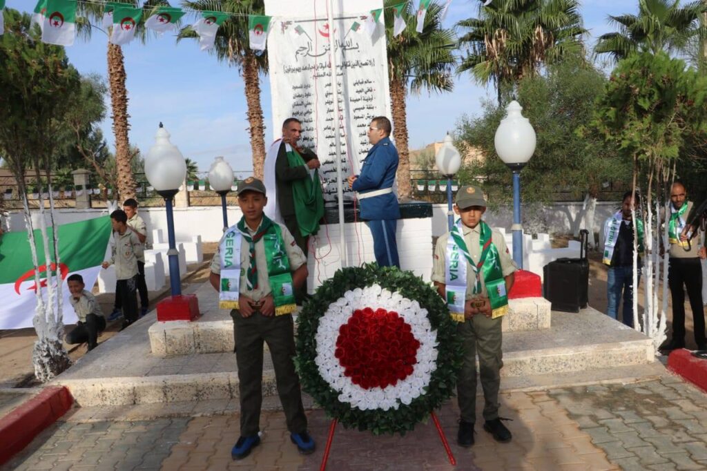 أين كانت البداية بالتوجه إلى مقبرة الشهداء ببانيو ببلدية المعاريف وبعد رفع العلم الوطني والاستماع للنشيد الوطني.