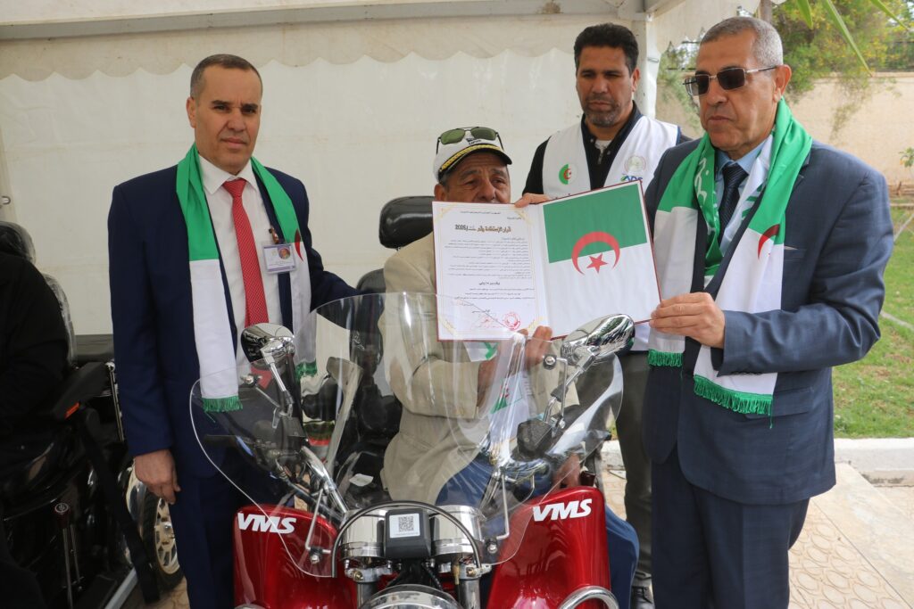 المسيلة/ في إطار البرنامج المسطر لإحياء يوم العلم المصادف ليوم 16 أفريل من كل سنة، أشرف اليوم الثلاثاء 14 أفريل 2026 السيد نجم الدين طيار والي الولاية، على انطلاق فعاليات عملية منح تجهيزات خاصة بذوي الهمم والمتمثلة في 40 دراجة نارية لفائدة الأشخاص ذوي الاحتياجات الخاصة بمناسبة إحياء يوم العلم، من تنظيم مديرية النشاط الاجتماعي والتضامن بالتنسيق مع مديرية الادارة المحلية للولاية، بحضور السادة: رئيس المجلس الشعبي الولائي، أعضاء اللجنة الولائية للأمن، أعضاء البرلمان بغرفتيه، المندوب المحلي لوسيط الجمهورية، رئيس دائرة المسيلة، مدير الحماية المدنية، مدير النشاط الإجتماعي والتضامن، مدراء الهيئة التنفيذية، رئيس بلدية المسيلة، مدراء المؤسسات المتخصصة، مدير الوكالة الولائية للتنمية الإجتماعية، أسرة قطاع النشاط الاجتماعي، ممثلي الحركة الجمعوية الخيرية والأعمال التطوعية، وبحضور الأسرة الإعلامية.