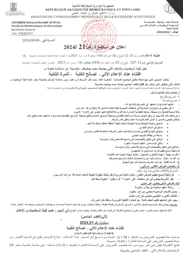 استشارة من أجل: اقتناء عتاد الاعلام الآلي11 سبتمبر، 20240 42 شاركها فيسبوك X مشاركة عبر البريد طباعة