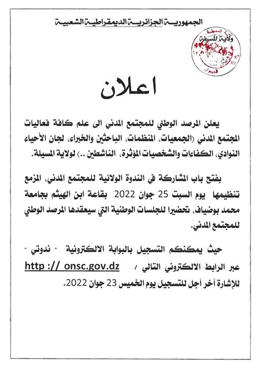 إعلان: فتح باب المشاركة في الندوة الولائية للمجتمع المدني