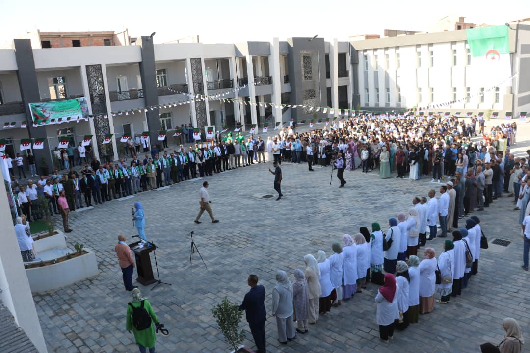 كما أشاد السيد والي الولاية بالمبادرة التي انطلقت منذ شهر، التي تتمثل في الحملة الولائية الكبيرة لتنظيف المدارس ومحيطها بمشاركة مصالح الإدارات العمومية، والجمعيات النشطة وأولياء التلاميذ. كما أشار إلى تزامن هذا الدخول المدرسي بتنظيم أسبوع وطني للصحة المدرسية (21 – 25 سبتمبر 2025)، يهدف إلى ترسيخ ثقافة الوقاية وتعزيز التربية الصحية في البيئة المدرسية، ليحضر بالمناسبة إلقاء درس نموذجي حول الصحة المدرسية، ومراسيم تنصيب النادي البيئي بهذه المؤسسة التربوية، مع تكريم عائلة المجاهد بحري عمر، الذي تحمل المؤسسة إسمه، مع غرس الأشجار بمحيط المؤسسة، ليعلن بعد ذلك عن الافتتاح الرسمي للموسم الدراسي 2025 – 2026.