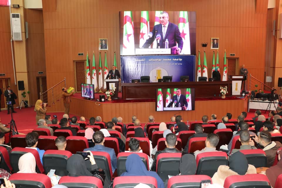 المسيلة/ أشرف نهار اليوم السيد عبد القادر جلاوي، والي الولاية على الإعلان الرسمي لافتتاح فعاليات اليوم الدراسي المنظم بجامعة محمد بوضياف بالمسيلة، حول آليات تنفيذ مضمون القرار الوزاري رقم 1275 المؤرخ في 27 سبتمبر 2022، المتضمن كيفيات إعداد مذكرات التخرج بعنوان مؤسسات ناشئة وبراءات اختراع، بقاعة المحاضرات “ابن الهيثم” بالقطب الجامعي بالمسيلة.