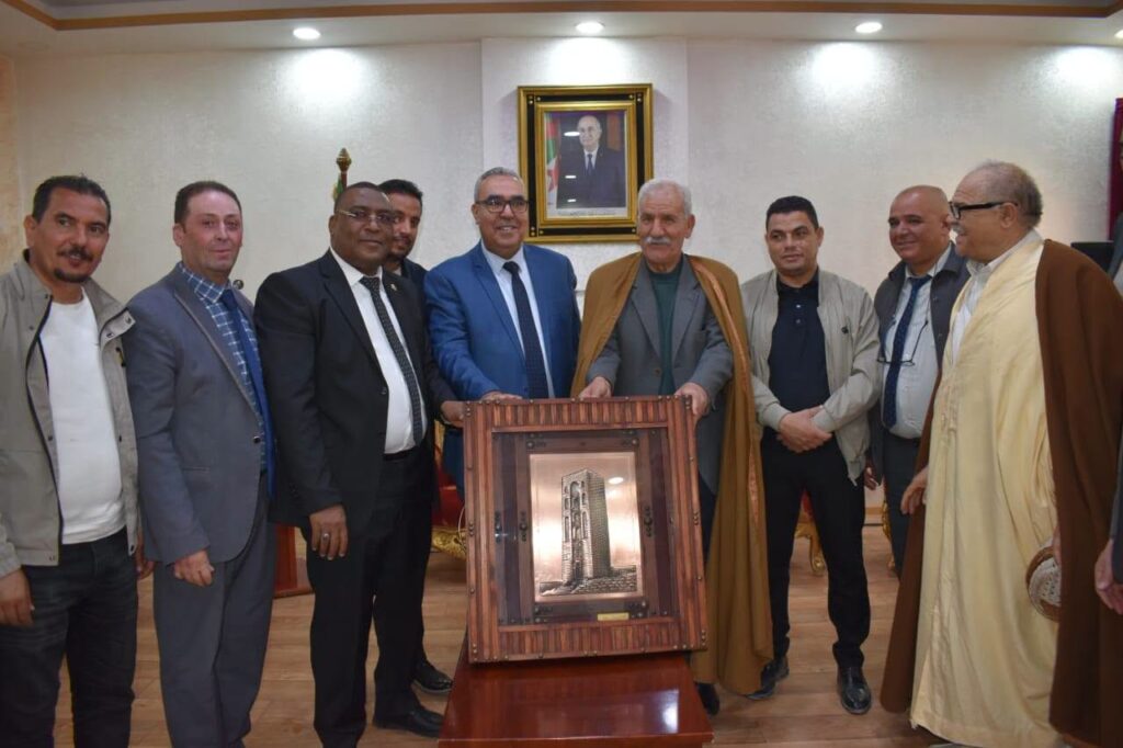 حيث استهل البرنامج بزيارة اجنحة معرض ولائي للصناعات والحرف التقليدية والاستماع لوصلات واعمال فنية من التراث المحلي وكذا عروض فلكلورية تراثية.