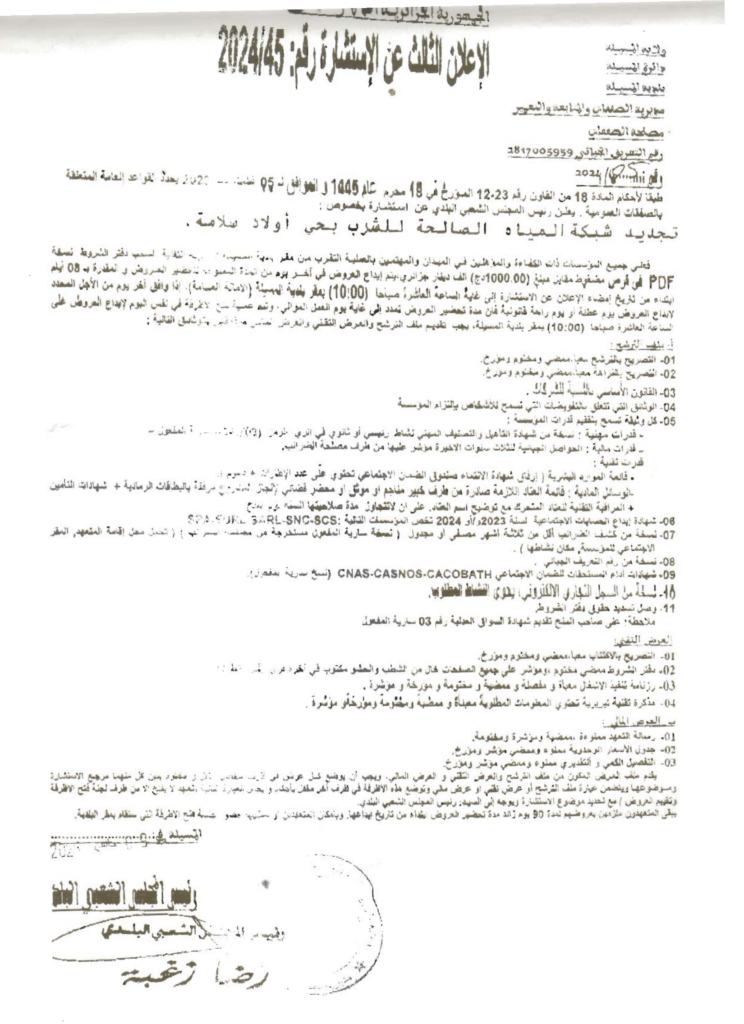 استشارة من أجل: تجديد شبكة المياه الصالحة للشرب بحي أولاد سلامة14 يناير، 20250 44 شاركها فيسبوك X مشاركة عبر البريد طباعة