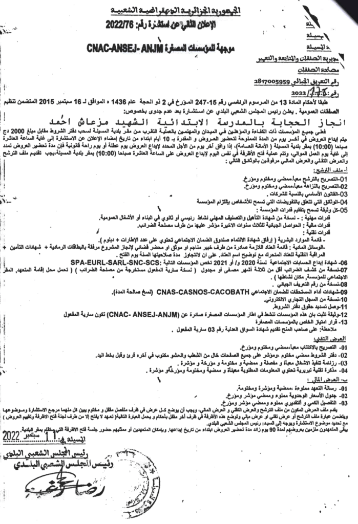 استشارة بعد عدم جدوى بخصوص: انجاز الحجابة بالمدرسة الابتدائية مزعاش احمد19 سبتمبر، 20220 19 شاركها فيسبوك X مشاركة عبر البريد طباعة