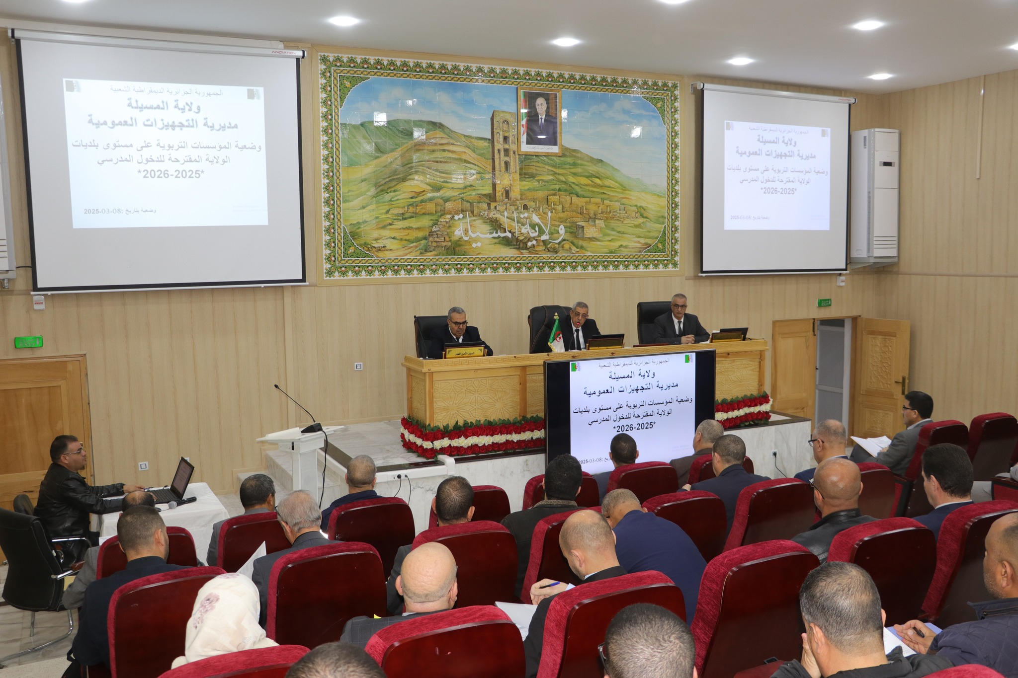 المسيلة/ ترأس اليوم السبت 08 مارس 2025 السيد نجم الدين طيار والي الولاية إجتماعا تنسيقييا، بقاعة الاجتماعات نور الدين صحراوي مقر الولاية، بحضور السادة: الوالي المنتدب لبوسعادة، الأمين العام للولاية، المفتش العام للولاية، مدير الإدارة المحلية، مدير الحماية المدنية، محافظ الغابات، السيدة والسادة رؤساء الدوائر، مدير التربية، مدير البرمجة ومتابعة الميزانية، المراقب الميزانياتي، أمين خزينة الولاية، مديرة البيئة، مدير التجهيزات العمومية، مدير التعمير والهندسة المعمارية والبناء، مدير التكوين والتعليم المهنيين، مدير الطاقة والمناجم، مدير الأشغال العمومية، مدير النقل، مدير الموارد المائية، مدير البريد والمواصلات السلكية واللاسلكية، مدير المصالح الفلاحية، مدير الصحة، مدير التجارة وترقية الصادرات، مدير الشباب والرياضة، مدير النشاط الاجتماعي والتضامن، مدير الشؤون الدينية والأوقاف، مدير شركة توزيع الكهرباء والغاز بالمسيلة، مدير وحدة الجزائرية للمياه، مدير وحدة ديوان التطهير بالمسيلة، مدير الهيئة التقنية للرقابة في البناء بالمسيلة (CTC)، المراقبين الماليين لدى البلديات، وأمناء الخزينة لدى البلديات، رؤساء المصالح وملحق بالديوان.
