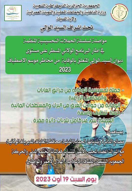 المسيلة/ تحت إشراف السيد والي الولاية، تواصل العمليات الكبرى للتحضير لموسم الخريف وآثار التقلبات الجوية عبر جميع بلديات ودوائر الولاية.