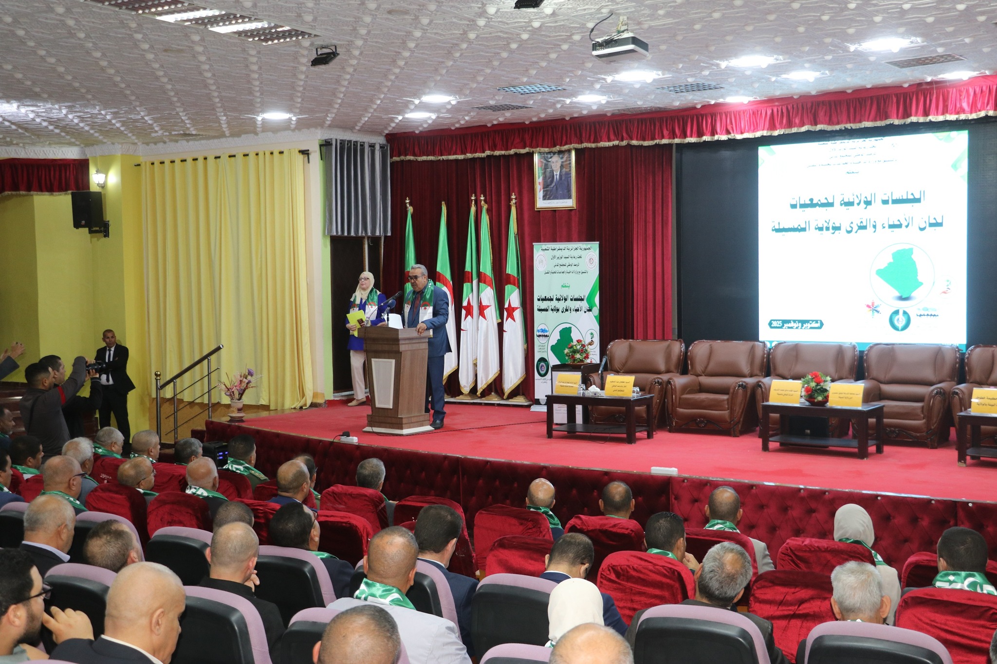 المسيلة/ نيابة عن السيد والي الولاية ، أشرف اليوم الخميس 23 أكتوبر 2025، السيد الأمين العام للولاية، على فعاليات أشغال الجلسات الحوارية الولائية المنظمة من طرف المرصد الوطني للمجتمع المدني، بقاعة المحاضرات عبد المجيد علاهم- بجامعة المسيلة -وسط، بحضور كل من السادة: ممثل المرصد الوطني للمجتمع المدني، رئيس المجلس الشعبي الـولائـي بالنيابة، الوالي المنتدب لبوسعادة، أعضاء اللجنة الولائية للأمن، أعضاء البرلمان بغرفتيه، المندوب المحلي لوسيط الجمهورية، المفتش العام للولاية، مدير التقنين والشؤون العامة، مدير الجامعة، مدير الحماية المدنية، محافظ الغابات، أعضاء المجلس الأعلى للشباب، ممثل المرصد الوطني للمجتمع المدني بالولاية، أعضاء الأسرة الثورية، رؤساء الدوائر، مدراء الهيئة التنفيذية، رؤساء المجالس الشعبية البلدية، معتمدي الشؤون الدينية بالدوائر، رؤساء جمعيات لجان الأحياء والقرى وأولياء التلاميذ، الأعيان وممثلي الحركة الجمعوية والمجتمع المدني، مدراء الوحدات والمؤسسات العمومية، إطارات من مختلف المصالح الأمنية، إطارات مصالح الحماية المدنية ومحافظة الغابات، الأستاذة الباحثين في مختلف التخصصات من جامعة المسيلة، مختصين نفاسانيين من قطاعات النشاط الاجتماعي والتضامن، قطاع الصحة، ومربي شباب من قطاع الشباب والرياضة، أفواج الكشافة الإسلامية الجزائرية، عناصر الهلال الأحمر الجزائري والأســــرة الإعلاميــة.