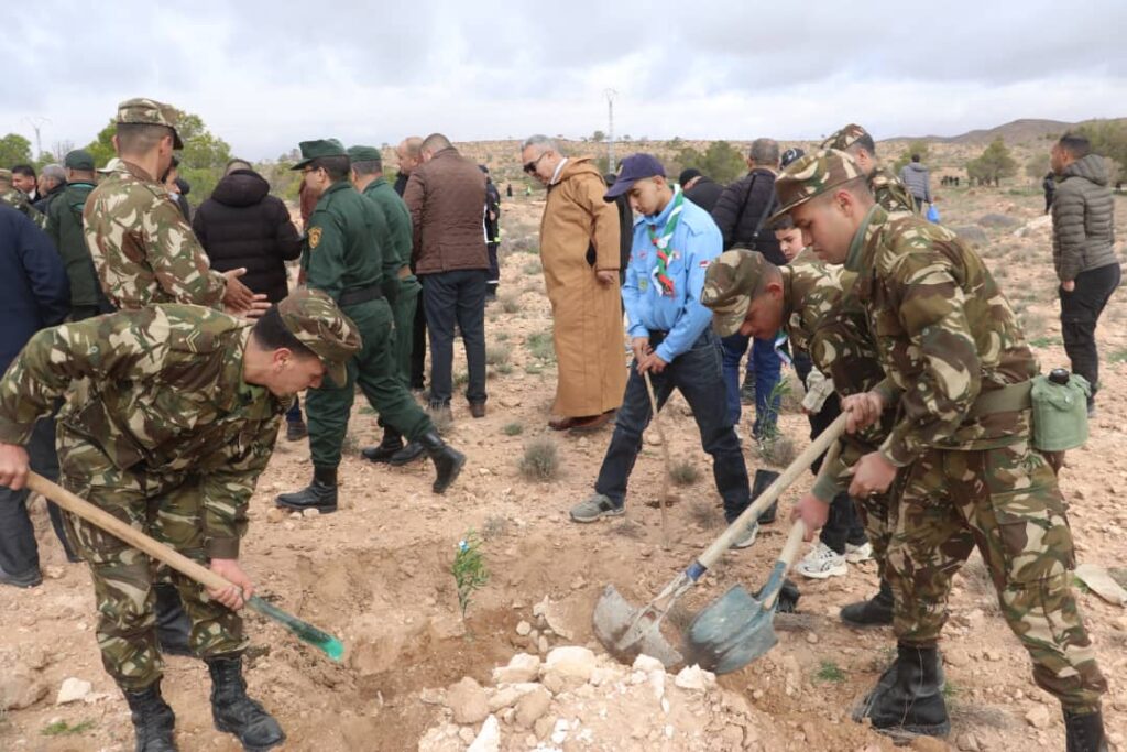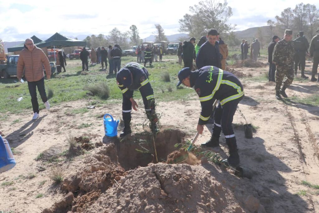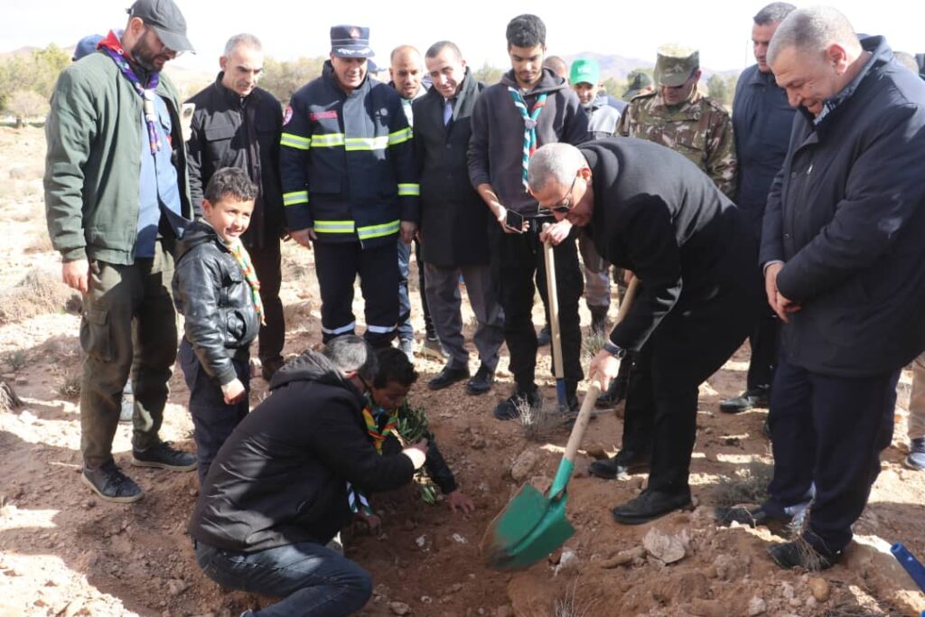 المسيلة/ أشرف اليوم السبت 14 فيفري 2026، السيد نجم الدين طيار والي الولاية، على إعطاء إشارة انطلاق الحملة الوطنية الكبرى لغرس 05 مليون شجرة، على مستوى منطقة السد الأخضر، الطريق الوطني رقم 46 منطقة تواب ببلدية الهامل، بحضور السادة: الوالي المنتدب لبوسعادة، أعضاء اللجنة الولائية للأمن، أعضاء البرلمان بغرفتيه، المندوب المحلي لوسيط الجمهورية، أعضاء المجلس الأعلى للشباب، الأمين العام للولاية، الأمين العام للمقاطعة الإدارية بوسعادة، مدير الحماية المدنية، محافظ الغابات، مديرة المصالح الفلاحية، مديرة البيئة، مدير الصناعة، رئيس دائرة بوسعادة، مدير التربية، مدير الشباب والرياضة، مدراء الهيئـة التنفيذية، رئيس المجلس الشعبي لبلدية الهامل، المدراء المنتدبون للمقاطعة الإدارية بوسعادة، أعضاء المجلس الشعبي الولائي، بمشاركة أفراد الجيش الوطني الشعبي، مختلف المصالح الأمنية، أعوان محافظة الغابات، أعوان الحماية المدنية، المديريات والمؤسسات العمومية، مصالح البلديات، الجمعيات والنوادي البيئية، أفراد الكشافة الإسلامية، وفعاليات المجتمع المدني والحركة الجمعوية وجمع غفير من المواطنين.