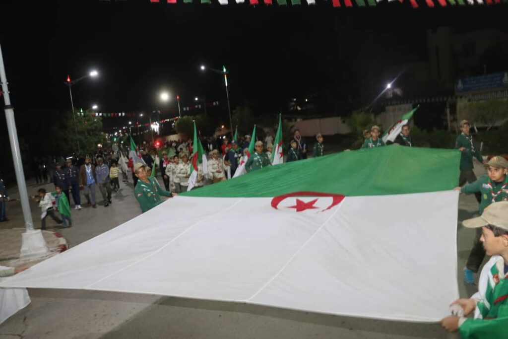 وبعد قراءة بيان أول نوفمبر1954، وفي تمام الساعة 00:00 سا تم رفع العلم الوطني والاستماع إلى النشيد الوطني، إضافة لأخذ صور تذكارية مع مختلف التشكيلات الأمنية ومربعات فرق : الحماية المدنية والنحاسية وكذا الكشافة الإسلامية.