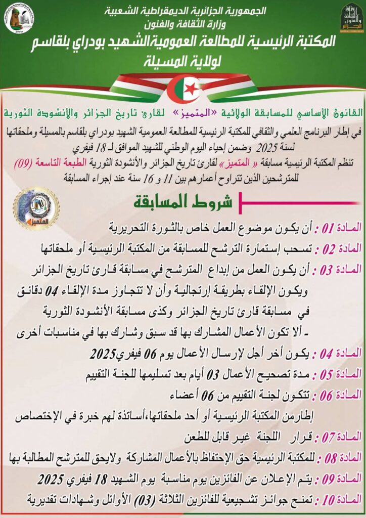 المسابقة الولائية لقارئ تاريخ الجزائر الحديث والأنشودة الثورية
