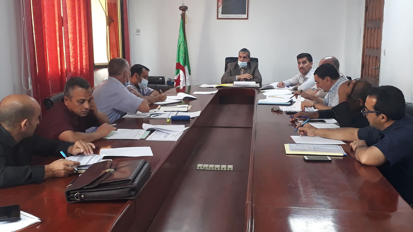 لسيد الأمين العام للولاية ترأس اجتماعا، بحضور كل من السادة/ مدير الموارد المائية-مدير الاشغال العمومية – مدير البرمجة ومتابعة الميزانية -مدير وحدة الديوان الوطني للتطهير – مدير وحدة الجزائرية -المراقب المالي –أمين خزينة للولاية-ملحق بالديوان.
