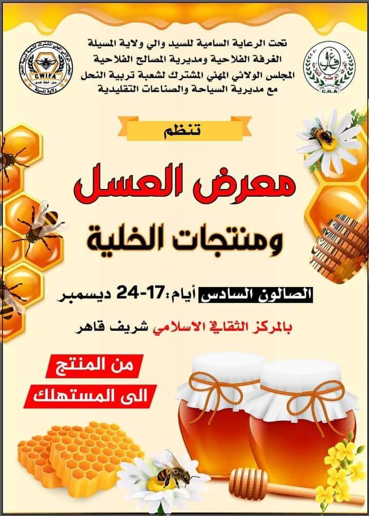 المسيلة/ المعرض الولائي للعسل ومنتجات الخلية تحت شعار من المنتج إلى المستهلك ادأيام 17-24 ديسمبر بالمركز الثقافي الإسلامي شريف قاهر بالمسيلة