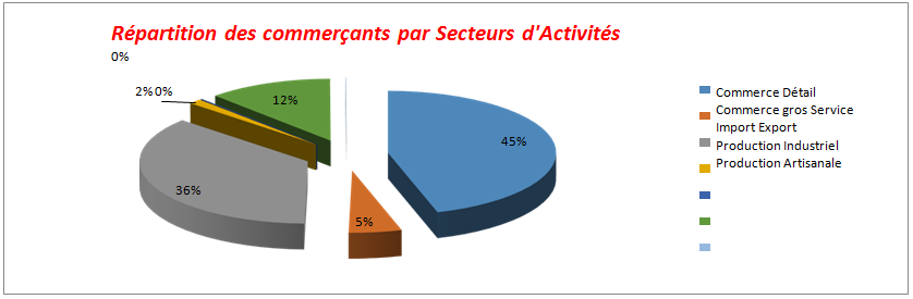 Le secteur du commerce est représenté par 54 694 opérateurs recensés à travers la wilaya, Il se compose de sept secteurs d’activités