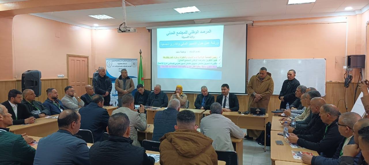 المسيلة/ في إطار برنامج تعزيز قدرات الفاعلين الجمعويين، تم السبت 06 ديسمبر 2025، إنطلاق أشغال اليوم التكويني، المنظم من طرف المرصد الوطني للمجتمع المدني، لفائدة الجمعيات المحلية، وذلك على مستوى المعهد الوطني العالي للتكوين الشبه طبي بمدينة المسيلة، بحضور السادة: المفتش العام للولاية، رئيس دائرة المسيلة، رئيس المجلس الشعبي لبلدية المسيلة، ممثل المرصد الوطني للمجتمع المدني، إطارات مديريتي “التقنين والشؤون العامة، والإدارة المحلية”، ممثلي الجمعيات المحلية وفعاليات المجتمع المدني.