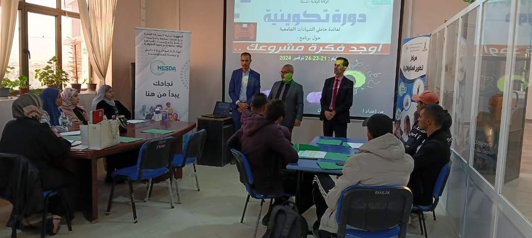 – تنظيم ورشة حول منصة “المقاول الذاتي” قدم من خلالها رائد الأعمال أيوب قريشي شروحات ونماذج لتطبيقات ناجحة حول مقاولين شباب أنشؤوا مشاريع مقاولاتية مختلفة ودعا الحاضرين من طلبة وشباب ومتربصي قطاع التكوين المهني إلى الإقتداء بهذه النماذج الناجحة، ليتم في الأخير فتح النقاش من طرف الوكالة الولائية لدعم وتطوير المقاولاتية NESDA، الوكالة الولائية لتسيير القرض المصغر ENGEM، ومركز تطوير المقاولاتية وحاضنة الأعمال بجامعة المسيلة، حول كيفيات إنشاء مؤسسات، طرح من خلالها الحاضرون أسئلة حول مراحل إنشاء المؤسسات وطرق التمويل والتسويق في الميدان.