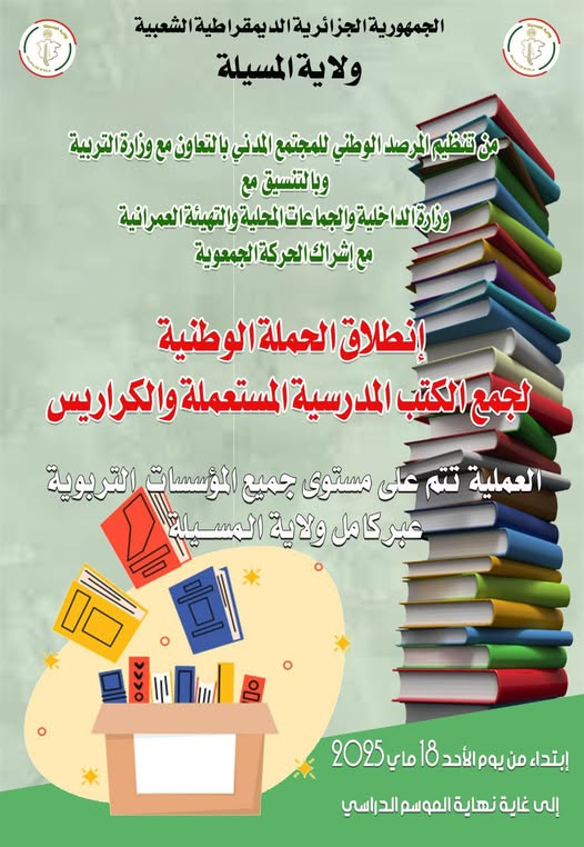 انطلاق الحملة الوطنية لجمع الكتب المدرسية المستعملة والكراريس