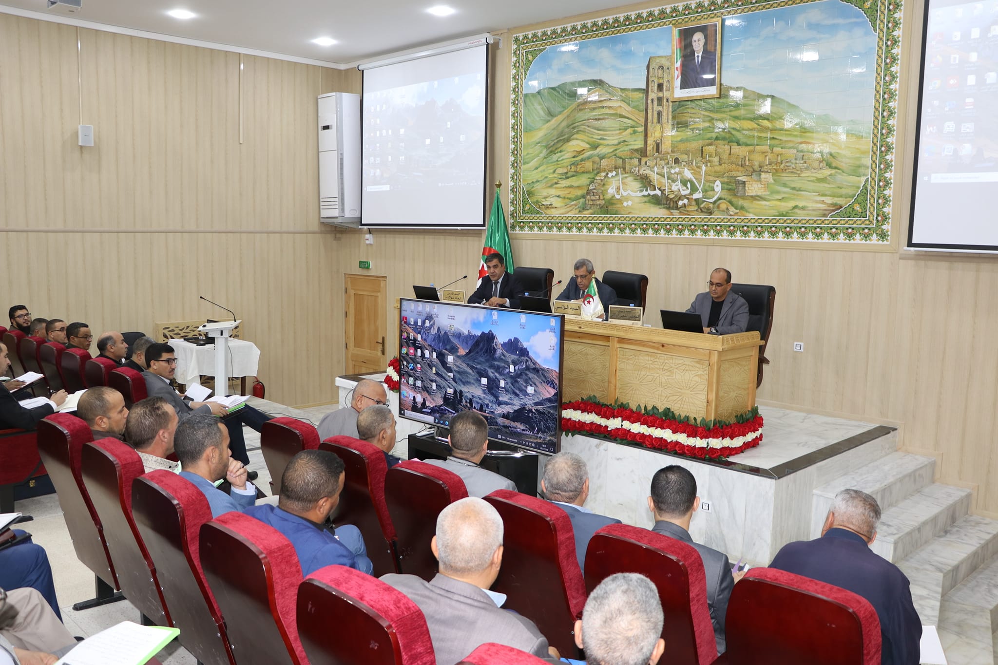 المسيلة/ ترأس السيد طيار نجم الدين والي الولاية صبيحة اليوم السبت 04 نوفمبر2023 اجتماعا للمجلس التنفيذي للولاية، بحضور كل من السيد رئيس المجلس الشعبي الولائي، السيد الأمين العام للولاية، المندوب المحلي لوسيط الجمهورية، السيد مدير الادارة المحلية، المفتش العام للولاية بالنيابة، مدير التنظيم والشؤون العامة بالنيابة، مدير المواصلات السلكية واللاسلكية بالولاية، السيدات والسادة: رؤساء الدوائر، مدراء الهيئة التنفيذية، السادة رؤساء المجالس الشعبية البلدية، مندوب الامن بالولاية، المراقب الميزانياتي، أمين خزينة الولاية، المدير العام لديوان الترقية والتسيير العقاري، مدير المؤسسة الولائية لتسيير مراكز الردم التقني بالمسيلة، مدير المؤسسة العمومية الولائية لتسيير وصيانة المساحات الخضراء بالمسيلة، مدير الوكالة العقارية الولائية، مدير وحدة الجزائرية للمياه، مدير وحدة ديوان التطهير بالمسيلة، مدير شركة توزيع الكهرباء والغاز بالمسيلة، مدير بريد الجزائر، مدير اتصالات الجزائر، مدير الهيئة التقنية للرقابة في البناء بالمسيلة، مدير الهيئة الوطنية للرقابة على أشغال الري، مدير مكتب الدراسات والابحاث بالمسيلة، مدير تعاونية الحبوب والبقول الجافةبالمسيلة، رؤساء الاقسام الفرعية للتجهيزات العمومية، مفتش التغذية المدرسية، الملحقين بالديوان ورؤساء المصالح.