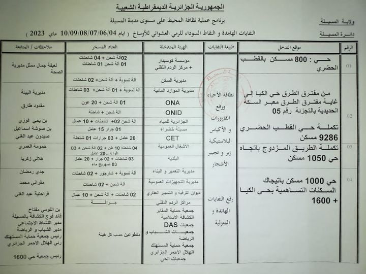 برنامج عملية نظافة المحيط على مستوى مدينة المسيلة