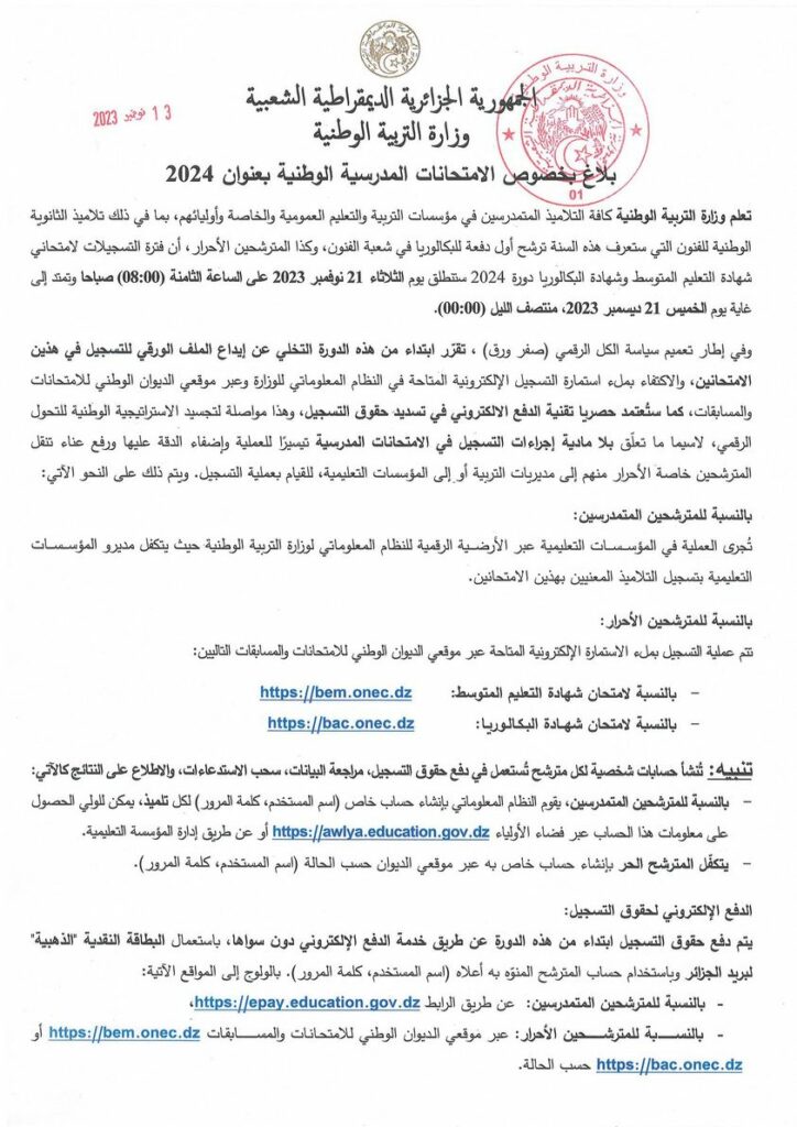 بلاغ بخصوص الامتحامات المدرسية الوطنية بعنوان 2024