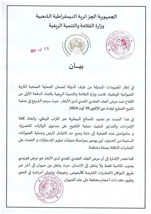 بيان/ مديرية المصالح الفلاحية لولاية المسيلة