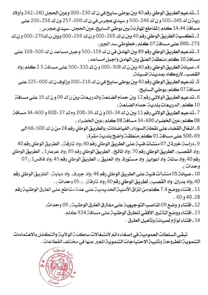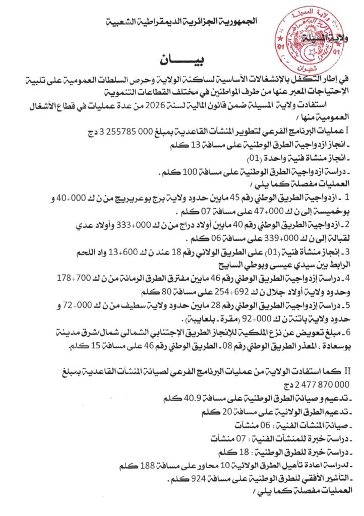 بيان هام بخصوص عمليات في قطاع الأشغال العمومية