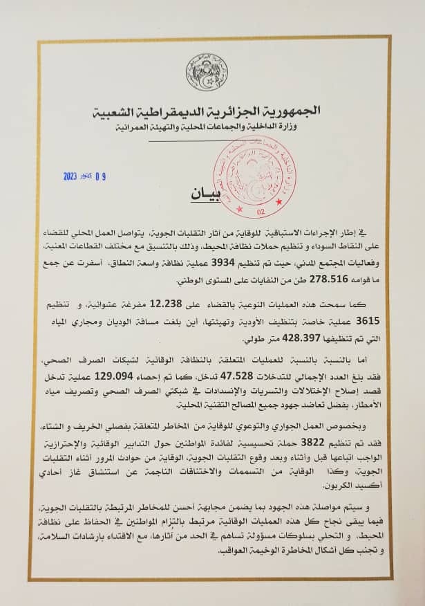 بيـان/ القضاء على النقاط السوداء وتنظيم حملات نظافة المحيط