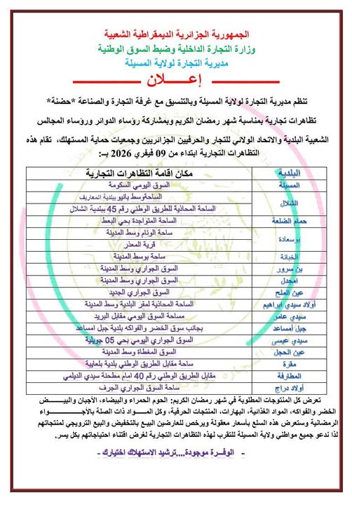 تظاهرات تجارية بمناسبة شهر رمضان 2026