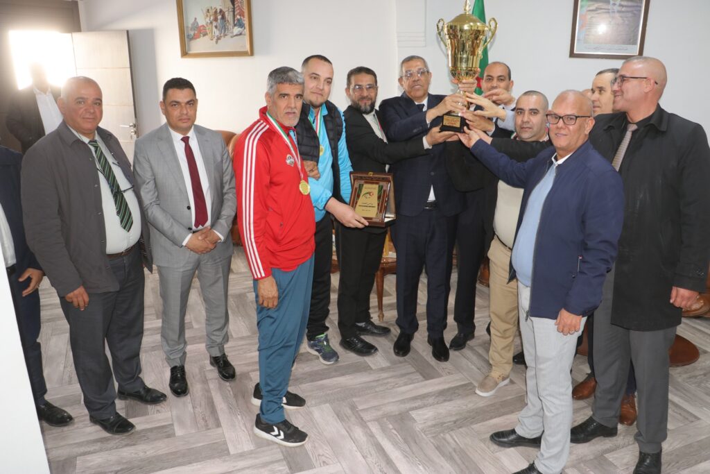 المسيلة/ أشرف أمسية اليوم الأحد 05 أفريل 2026 السيد نجم الدين طيار والي الولاية، بدار الضيافة مقر الولاية، بحضور السادة: رئيس المجلس الشعبي الولائي، رئيس دائرة المسيلة، مدير الشباب والرياضة، مدير النشاط الإجتماعي والتضامن، مدير المواصلات الشلكية واللاسلكية، رئيس بلدية المسيلة، عضو بالمجلس الشعبي الولائي، المتوجون والاطقم الادارية والفنية والأسرة الرياضية، على تكريم: