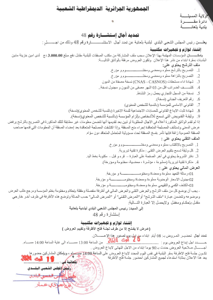 استشارة من أجل: اقتناء لوازم وتجهيزات مكتبية19 أغسطس، 20240 30 شاركها فيسبوك X مشاركة عبر البريد طباعة