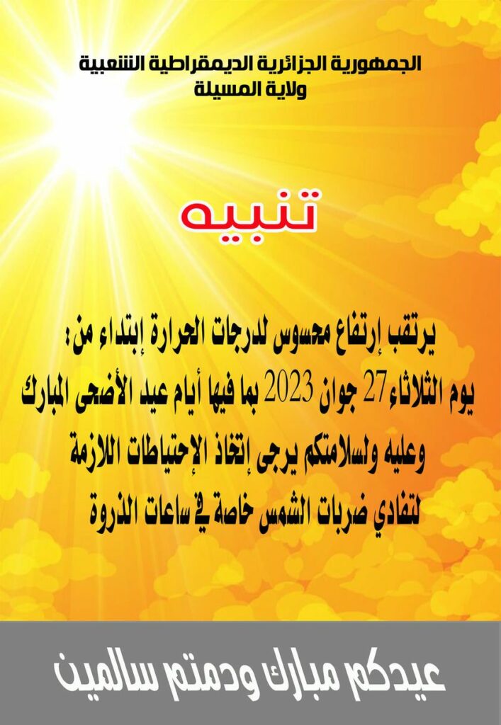 تنبيه/ ارتفاع محسوس في درجات الحرارة