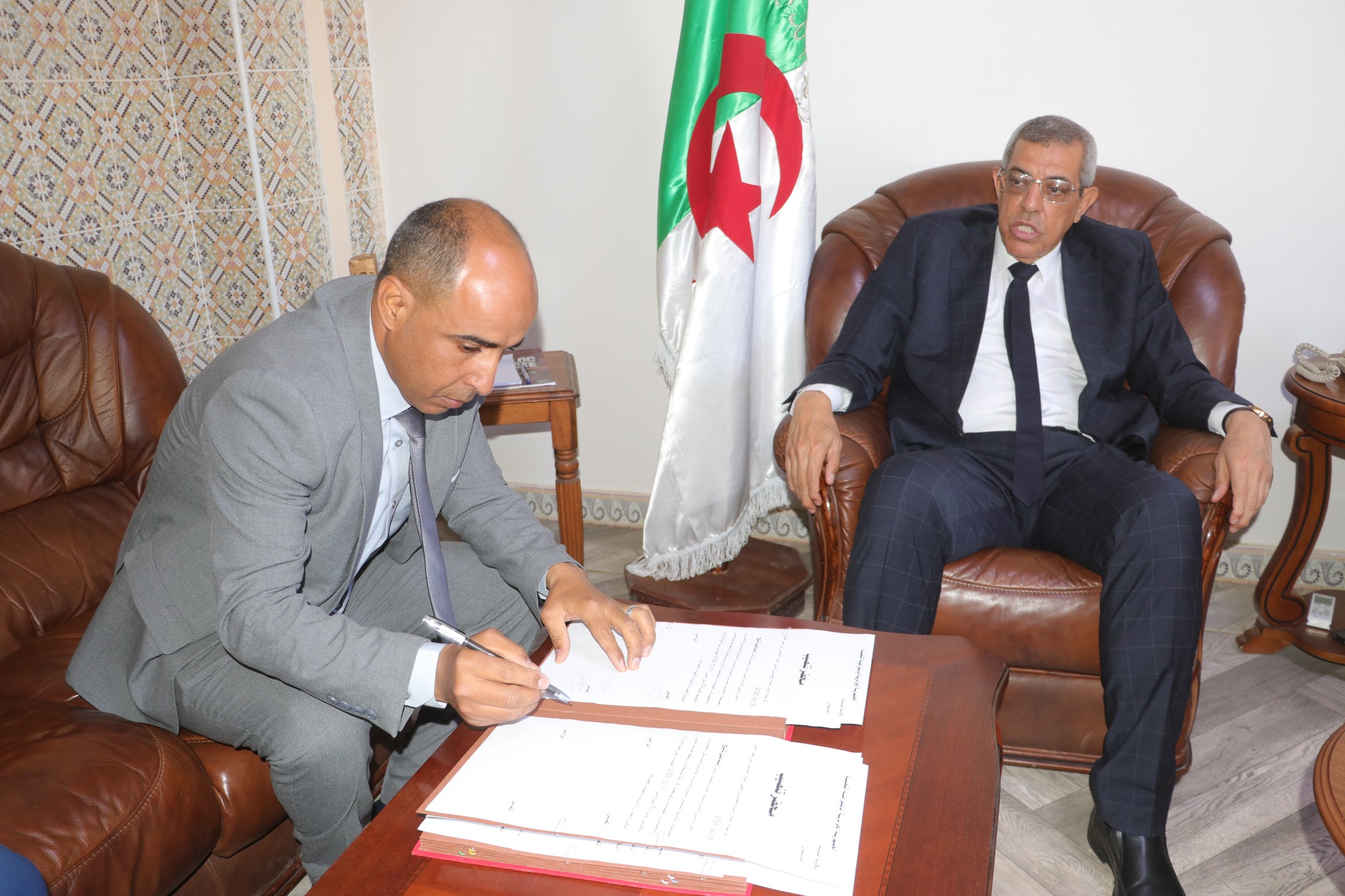 المسيلة/ أشرف اليوم الأحد 05 أفريل 2026 السيد نجم الدين طيار والي الولاية، بمقر الولاية على مراسم تنصيب السيد “اسماعيل شتيح” بصفته مكلف بتسيير شؤون المديرية المنتدبة للسكن والعمران والتجهيزات العمومية بالمقاطعة الإدارية بوسعادة، بحضور السادة: الأمين العام للولاية، مدير التعمير والهندسة المعمارية والبناء، مدير التجهيزات العمومية، مديرة السكن.