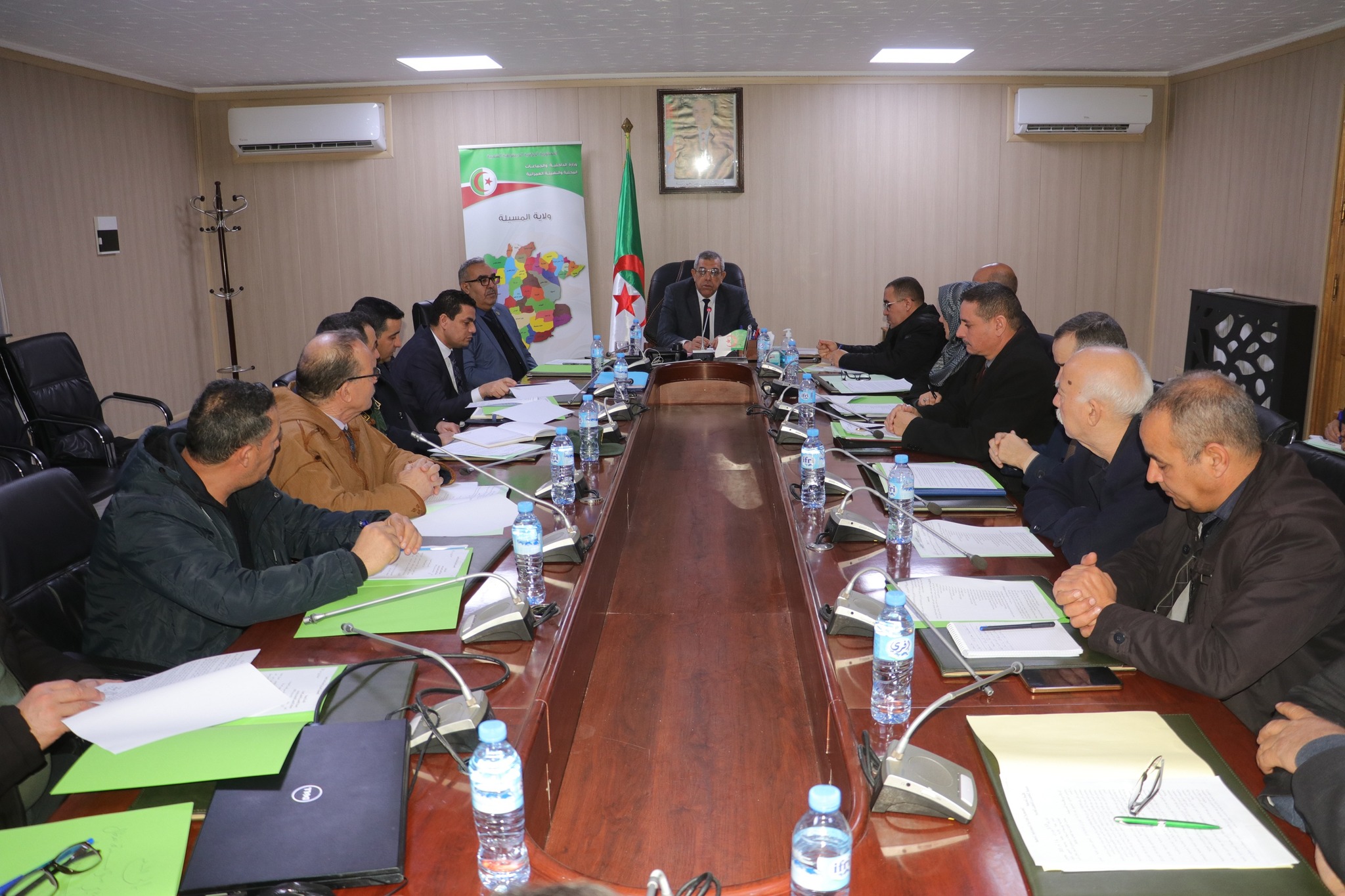 المسيلة/ ترأس اليوم الخميس 15 جانفي 2026 السيد نجم الدين طيار والي الولاية اجتماعا تنسيقيا، بقاعة الإجتماعات أحمد الغازي بمقر الولاية، بحضور السادة: الأمين العام للولاية، رئيس دائرة المسيلة، مدير الادارة المحلية، مدير التقنين والشؤون العامة، مدير التجارة، مدير الصناعة، مدير الطاقة، مدير الري، مديرة المصالح الفلاحية، مدير النقل، مدير الشؤون الدينية والأوقاف، مدير البريد والمواصلات السلكية واللاسلكية، مدير النشاط الاجتماعي والتضامن، المصالح الأمنية، رئيس المجلس الشعبي لبلدية المسيلة، رئيس غرفة التجارة والصناعة، الأمين الولائي لاتحاد التجار الجزائريين، مدير مؤسسة نفطال، رئيس الغرفة الفلاحية، الأمين الولائي لاتحاد الفلاحين الجزائريين، الأمين الولائي للاتحاد الوطني للناقلين الجزائريين، مديرة بريد الجزائر وحدة المسيلة، رئيس اللجنة الولائية للهلال الأحمر الجزائري، رؤساء المصالح وملحق بالديوان.