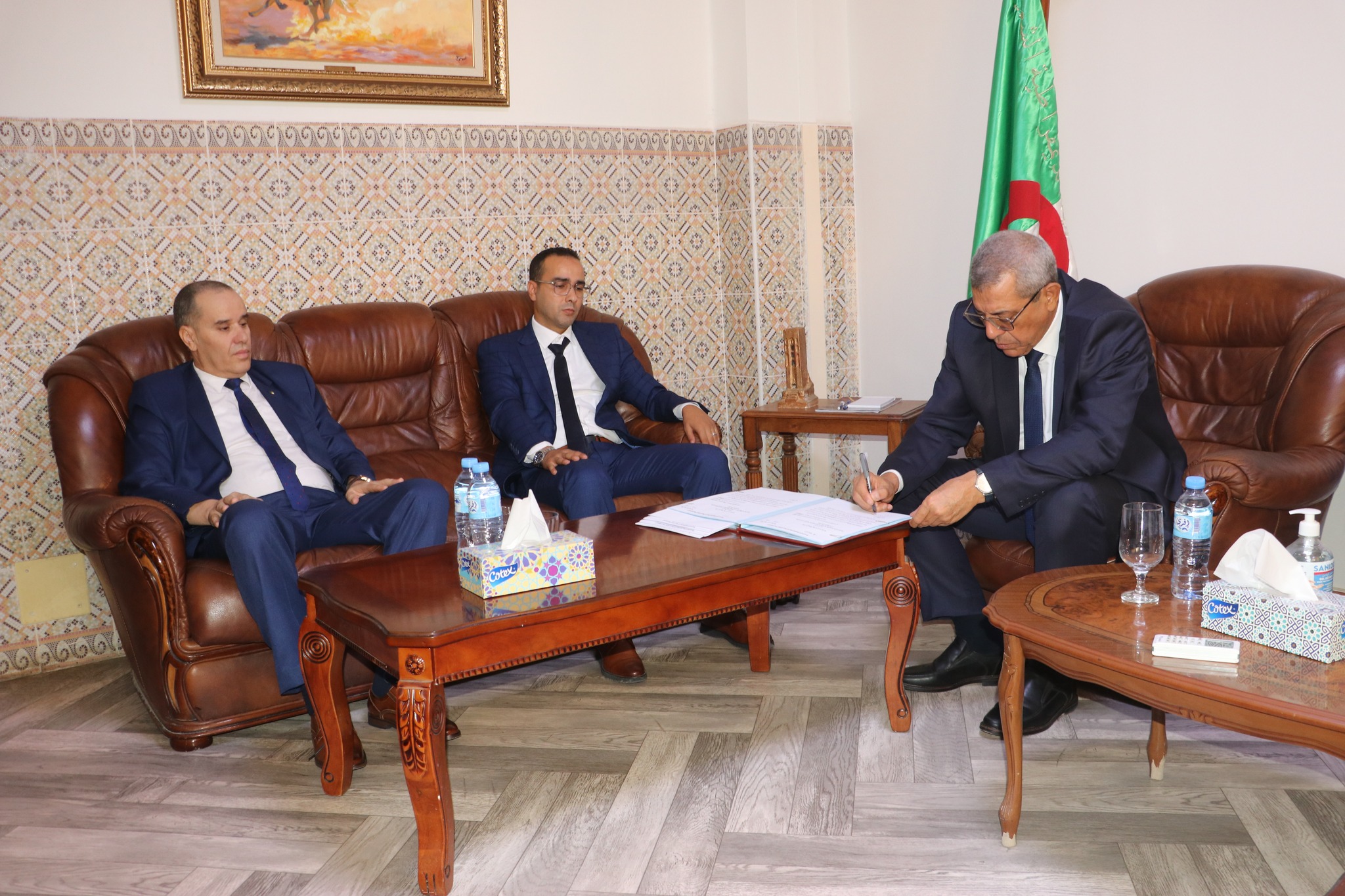 المسيلة/ أشرف صباح اليوم الخميس 04 سبتمبر 2025 السيد نجم الدين طيار والي الولاية على مراسيم تنصيب: السيد مروان لهويبي بصفته مديرا منتدبا للنشاط الاجتماعي بالمقاطعة الإدارية بوسعادة، بحضور السادة: الوالي المنتدب لبوسعادة، الأمين العام للولاية، رئيس الديوان، مدير النشاط الاجتماعي والتضامن بالولاية.