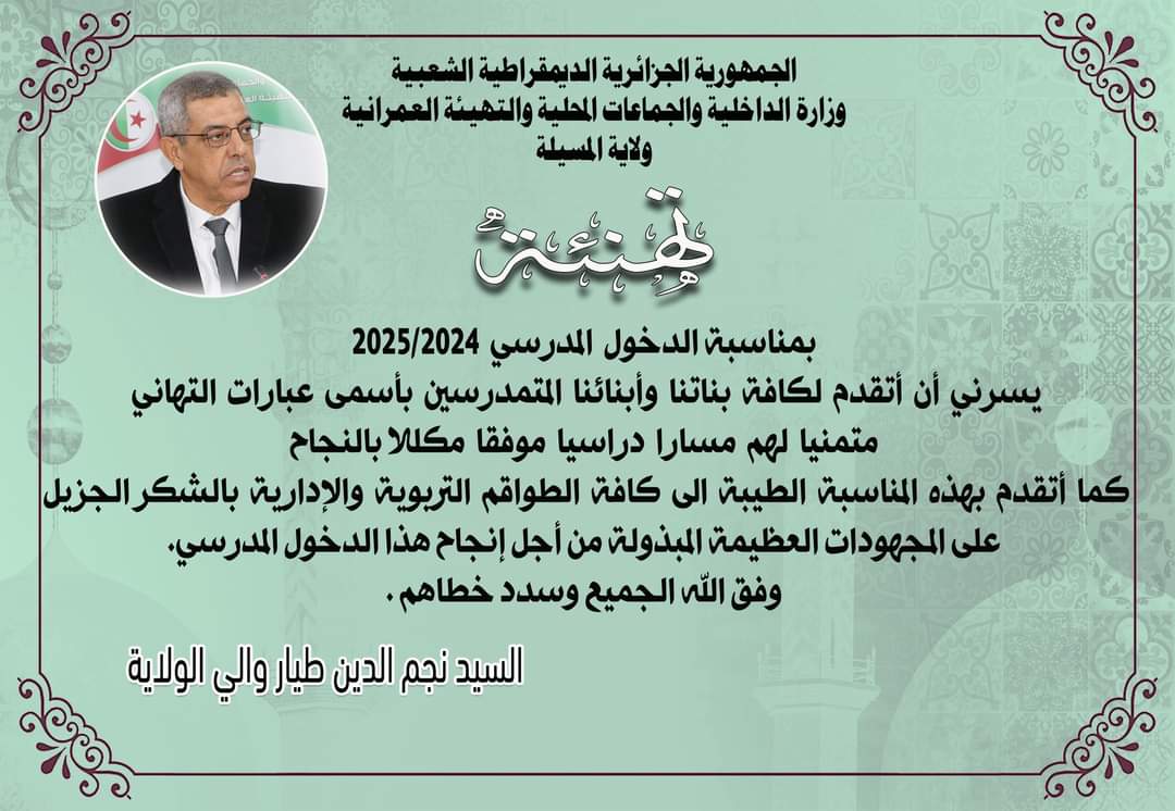 تهنئة بمناسبة الدخول المدرسي 2024-2025