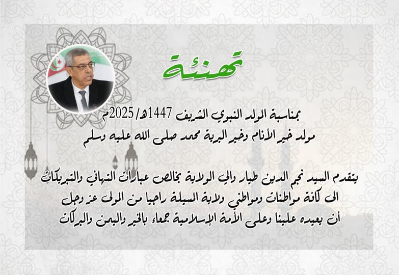 تهنئة بمناسبة المولد النبوي الشريف 1447 هـ /2025 م